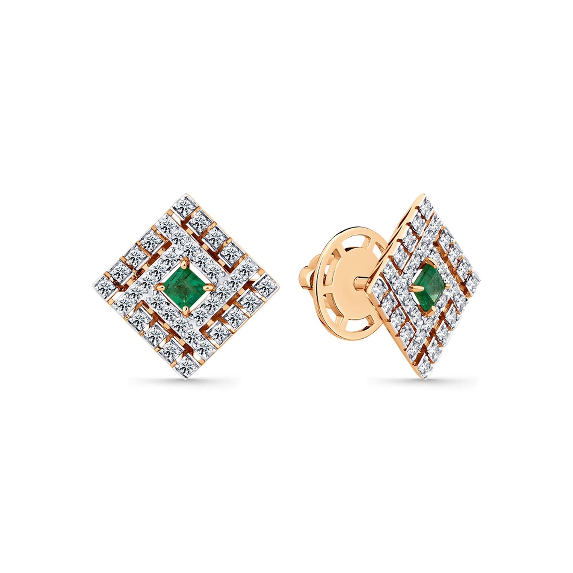 Золотые серьги Мастер Бриллиант 01M2-102306-00-01 с бриллиантом и изумрудом