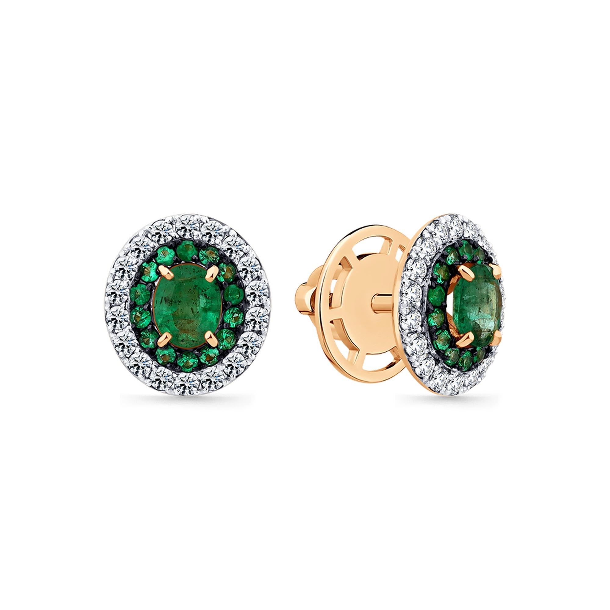 Золотые серьги Мастер Бриллиант 01M2-102309-00-01 с бриллиантом и изумрудом