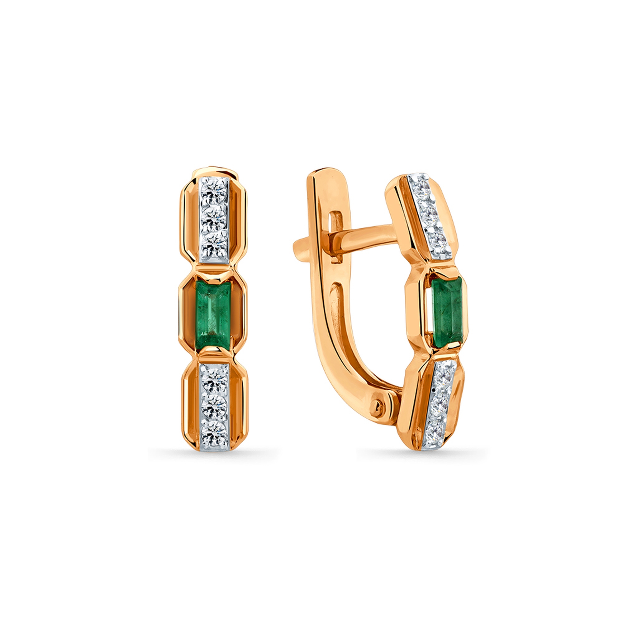Золотые серьги Мастер Бриллиант 01M2-109369-00-01 с бриллиантом и изумрудом