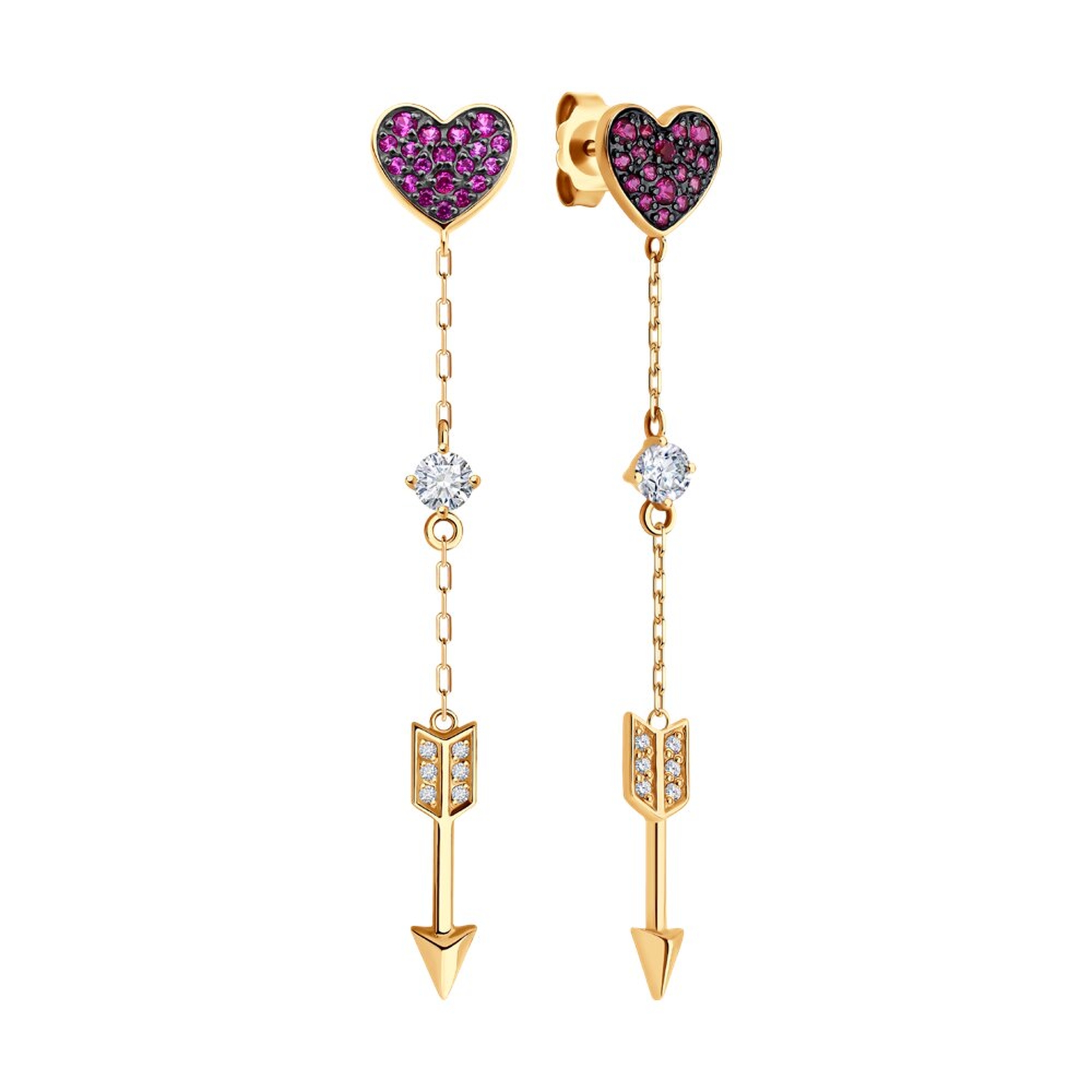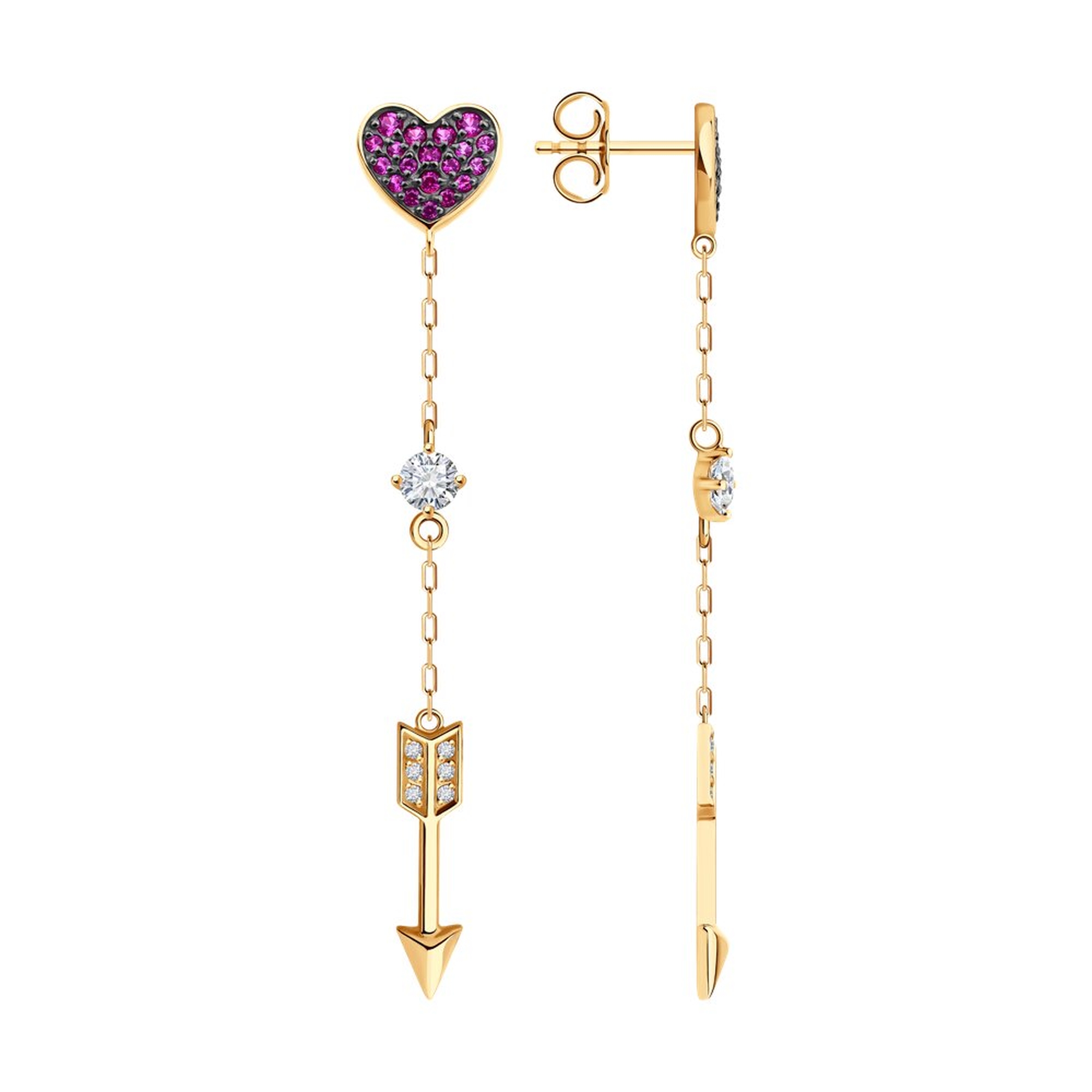 Золотые серьги SOKOLOV 0200524 с фианитом и рубиновым корундом