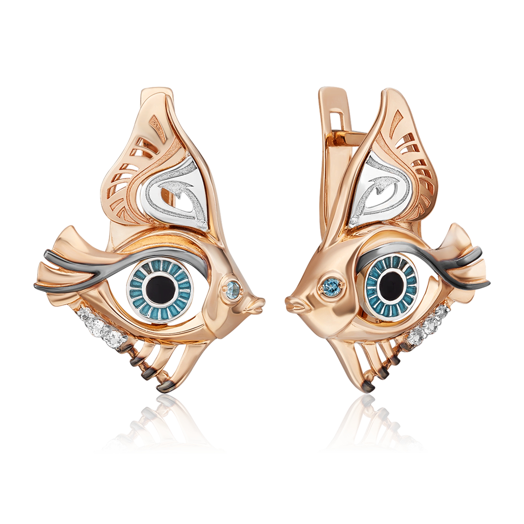 Серьги из комбинированного золота Platina 02-4870-00-201-1111 с топазом и эмалью