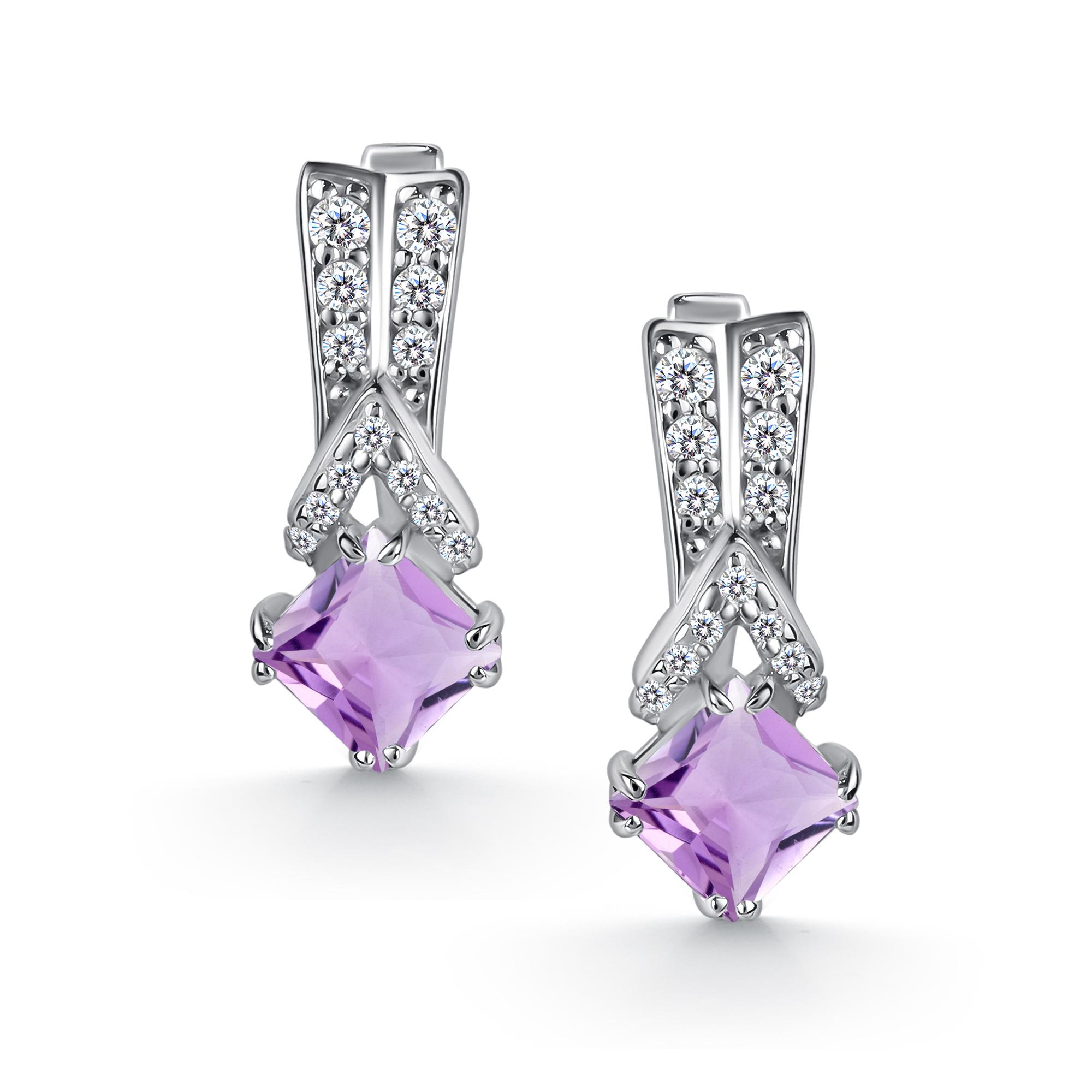 Серебряные серьги АЛЬКОР 02-5460/00АМ-00 с фианитом и аметистом