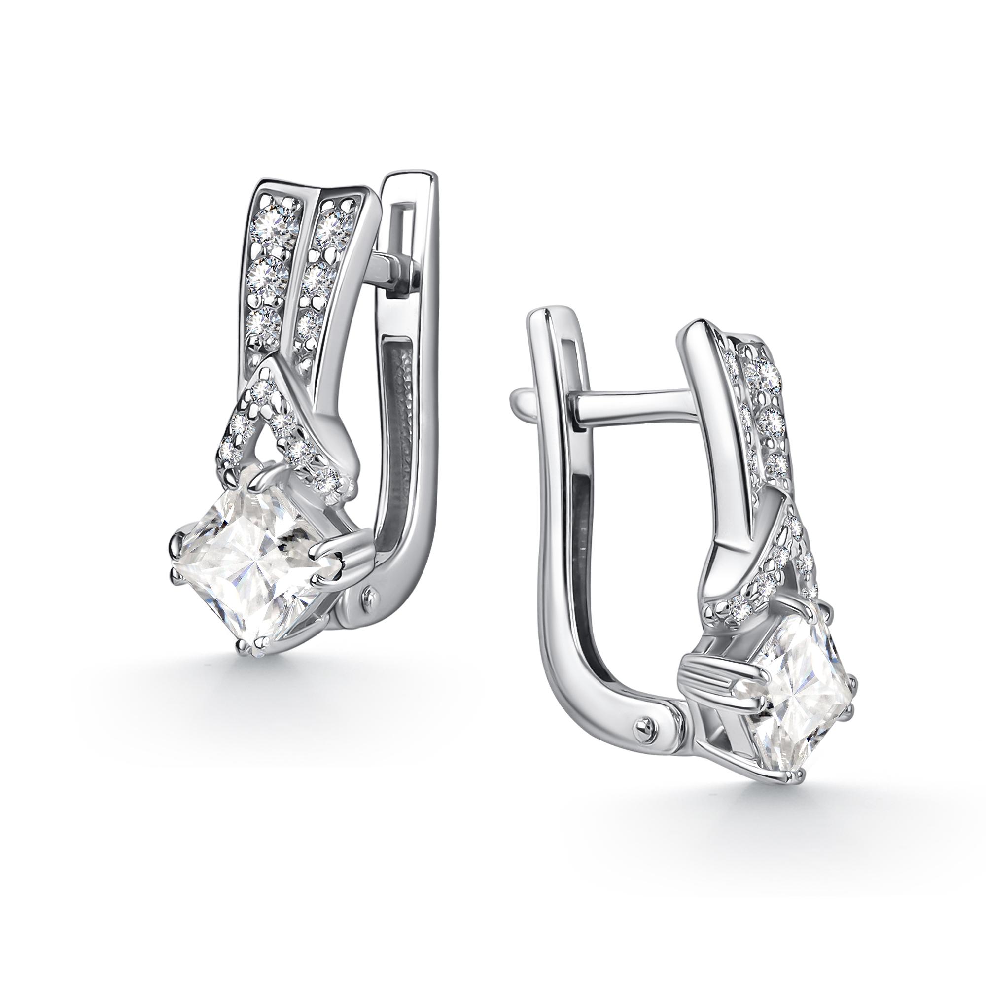 Серебряные серьги АЛЬКОР 02-5460/00ГХ-00 с фианитом и горным хрусталём