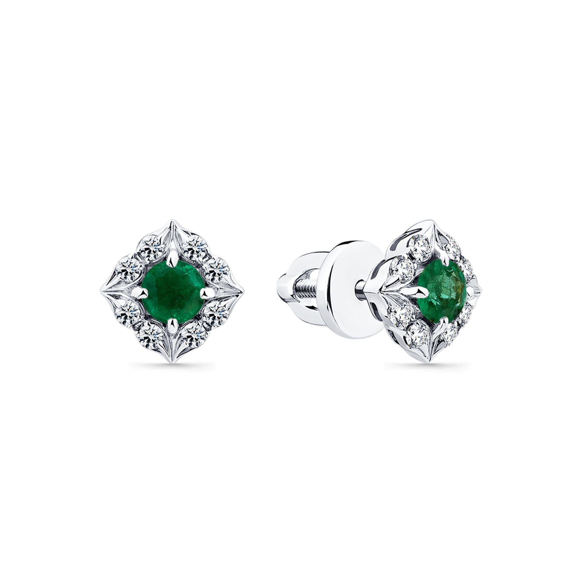 Серьги из белого золота Мастер Бриллиант 05M2-202218-00-01 с бриллиантом и изумрудом