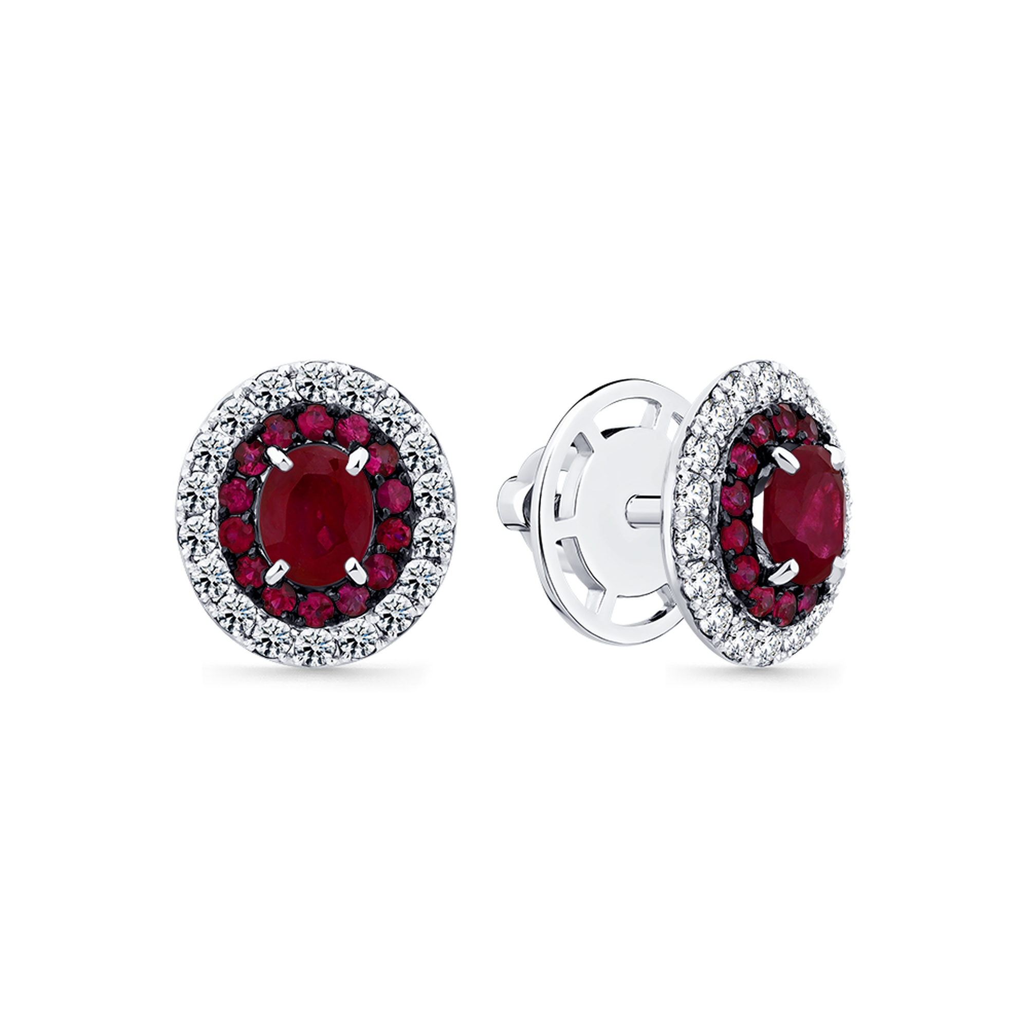Серьги из белого золота Мастер Бриллиант 05M2-202309-00-03 с бриллиантом и рубином