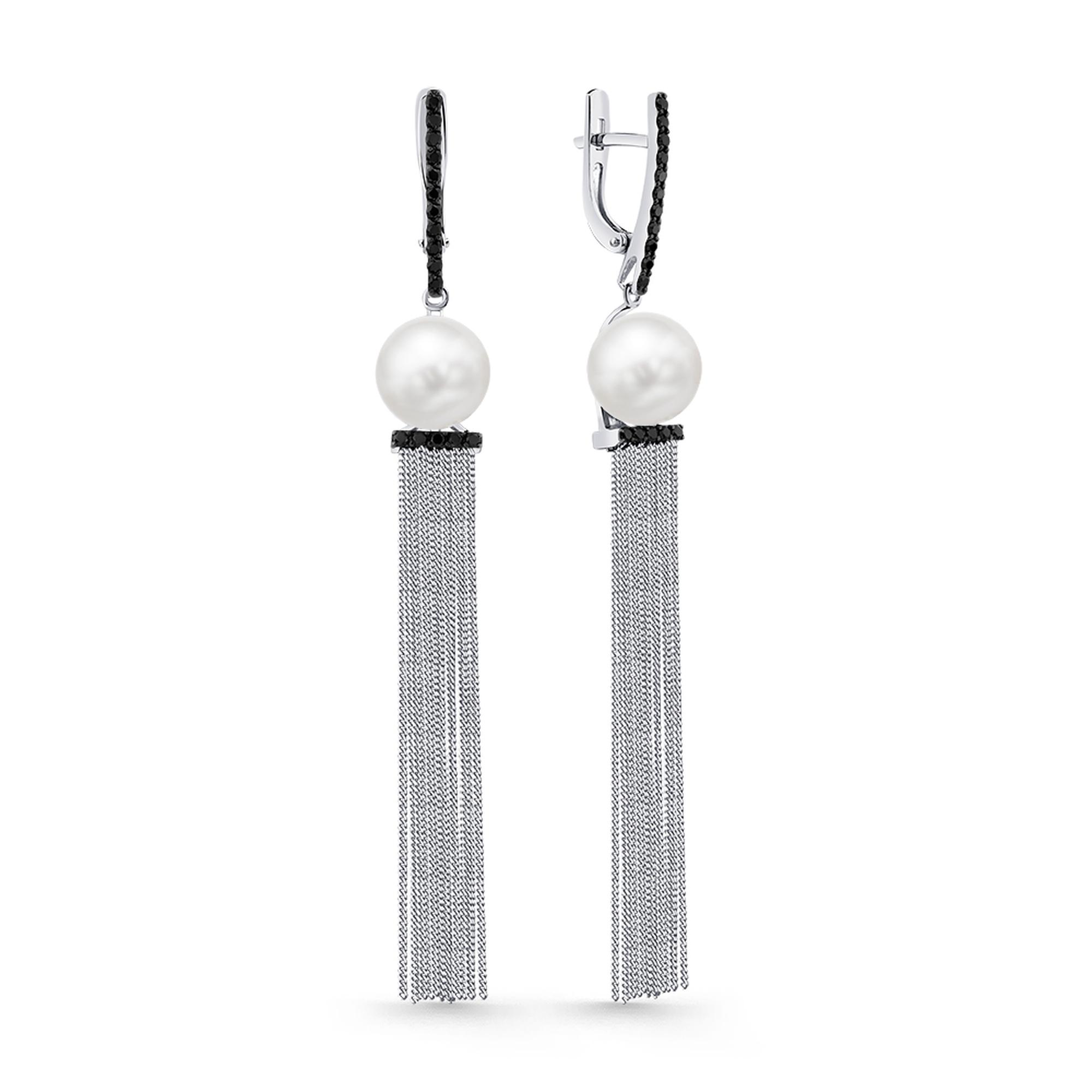 Серьги из белого золота Мастер Бриллиант 05M2-207301-00-55 с жемчугом и чёрным бриллиантом