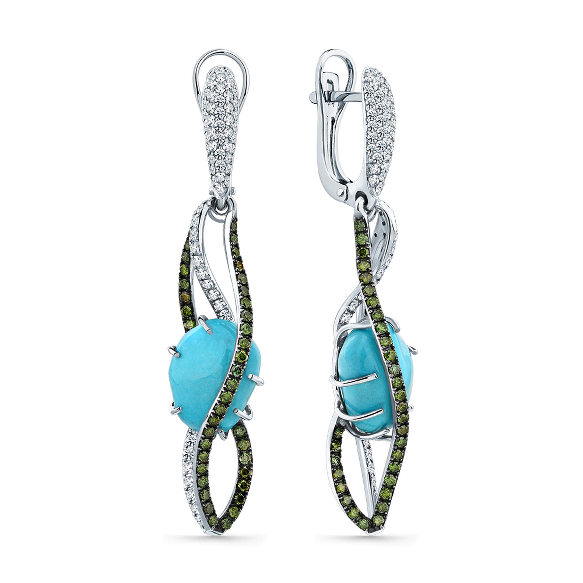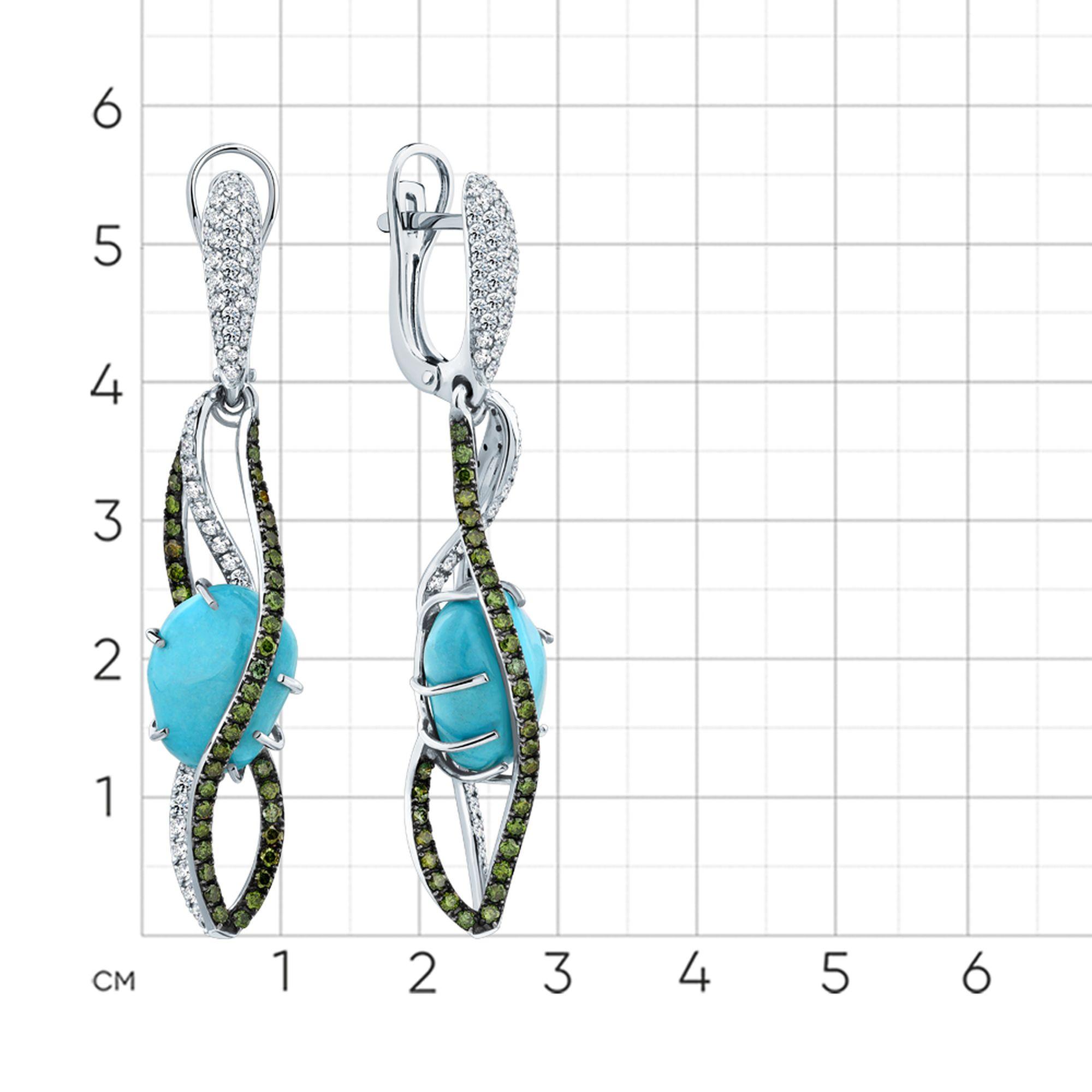Серьги из белого золота Мастер Бриллиант 05M2-209088-00-56 с бриллиантом и бирюзой