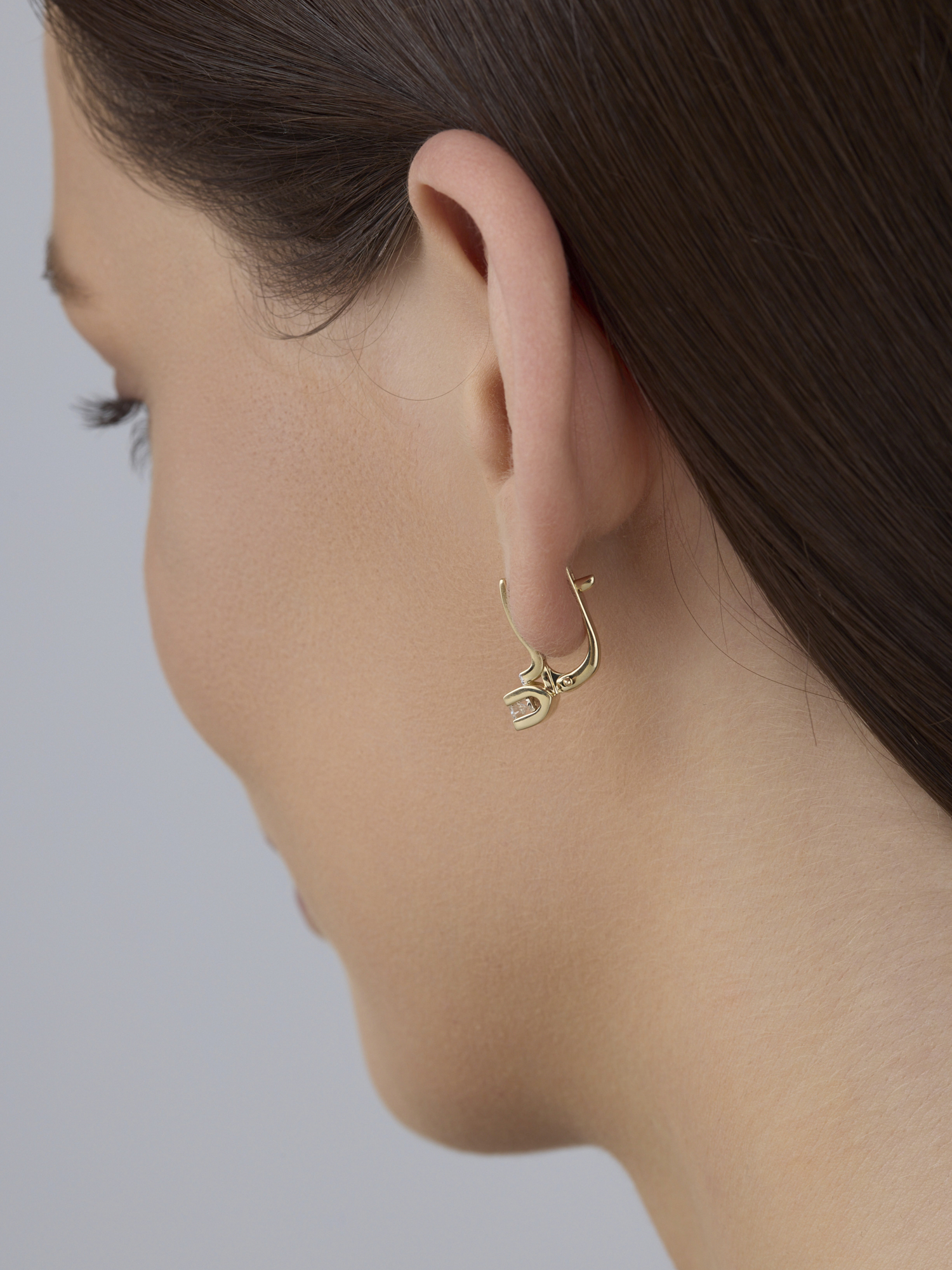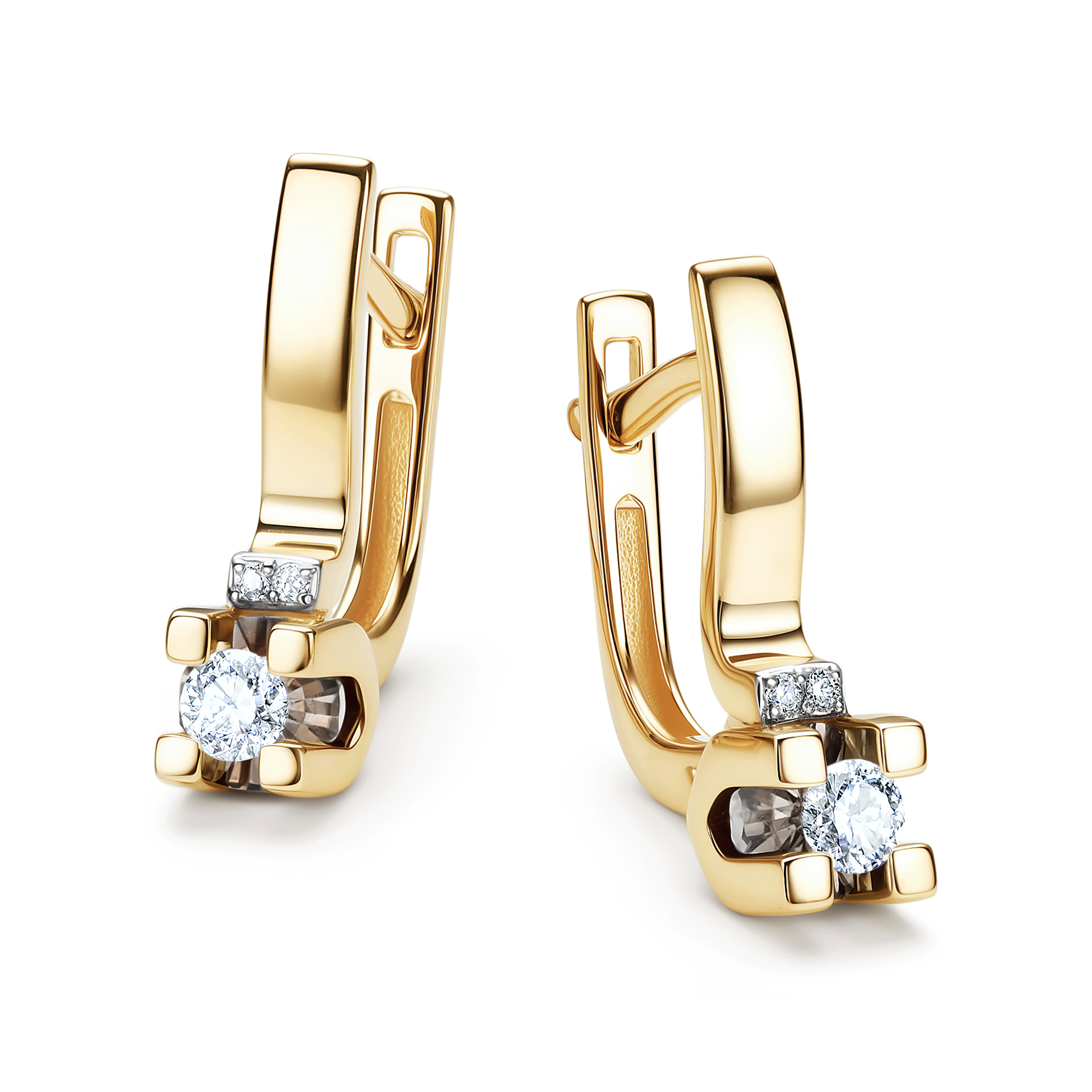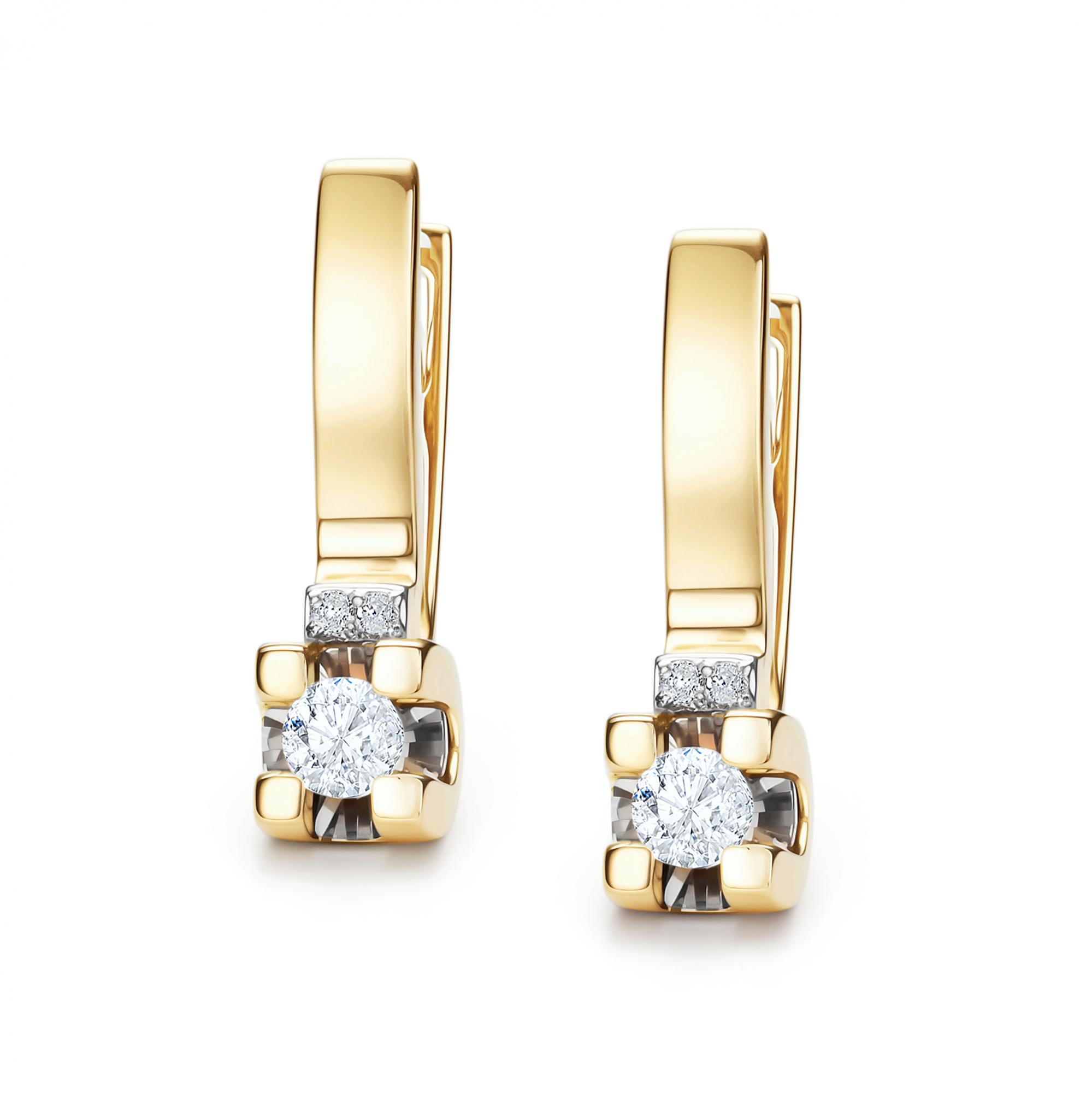 Серьги из лимонного золота АЛЬКОР 26118-300 с бриллиантом