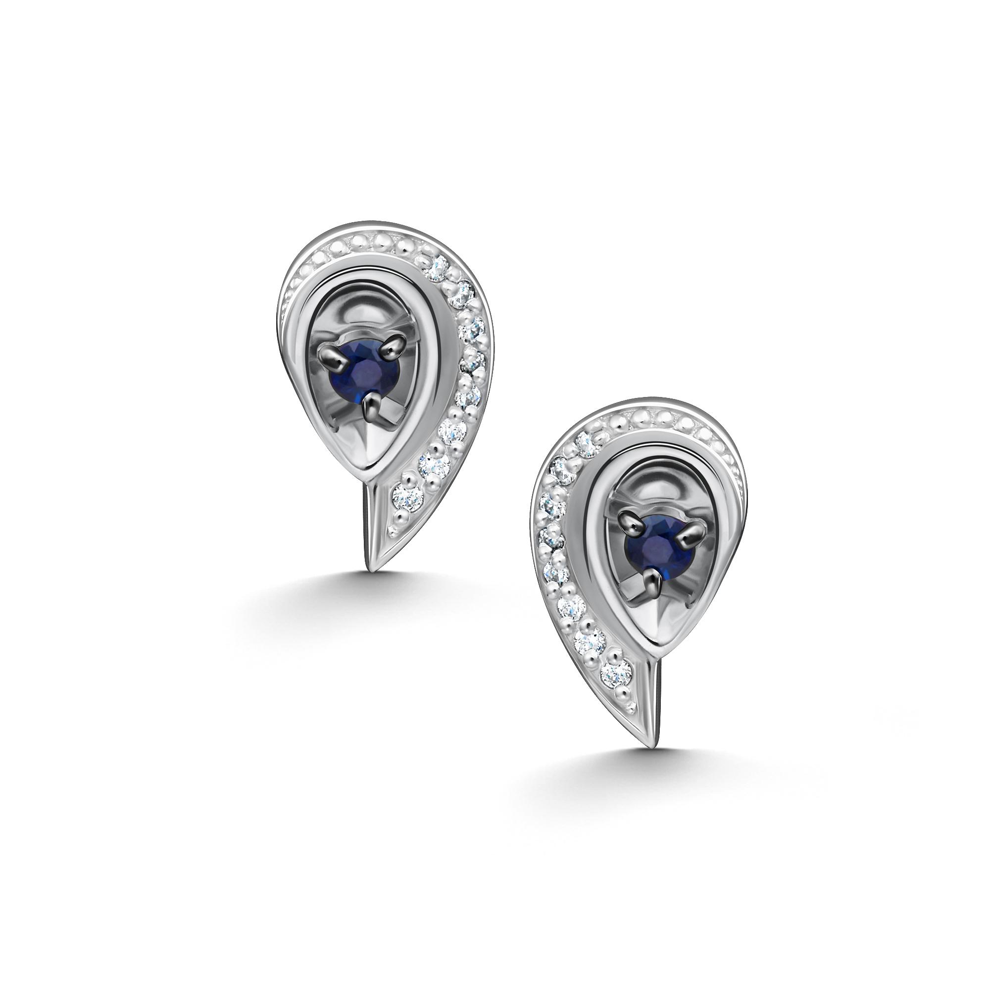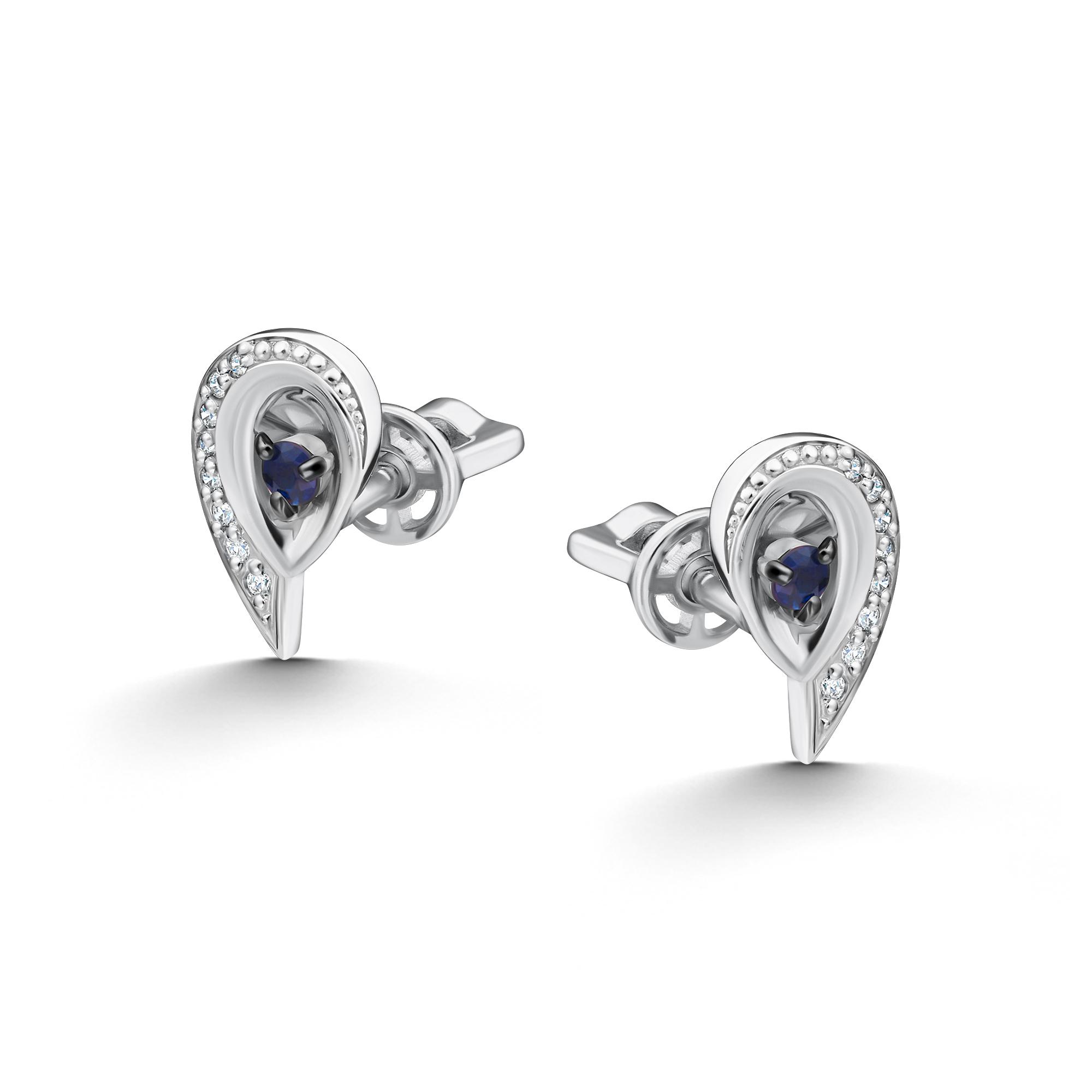Золотые серьги АЛЬКОР 26561-202 с бриллиантом и сапфиром