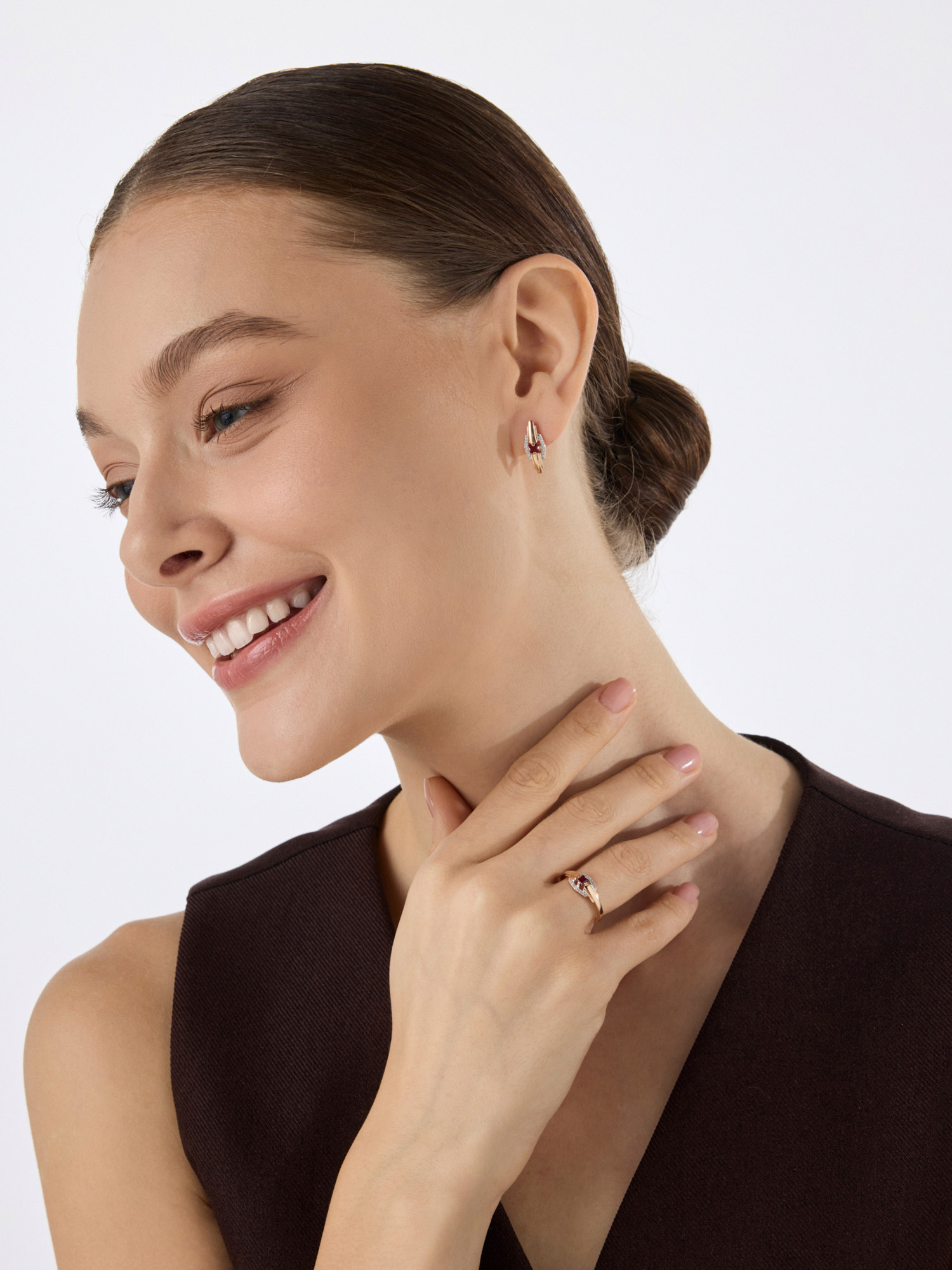 Золотые серьги АЛЬКОР 26690-103 с бриллиантом и рубином