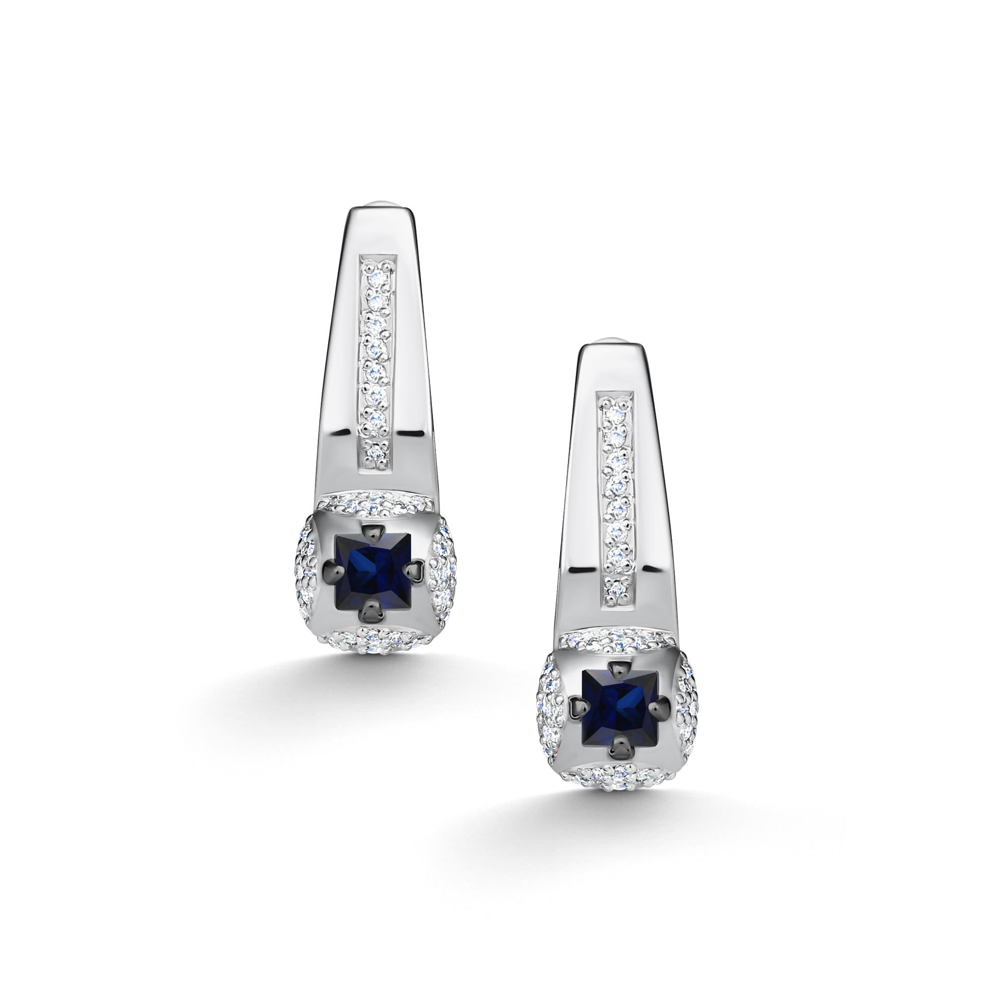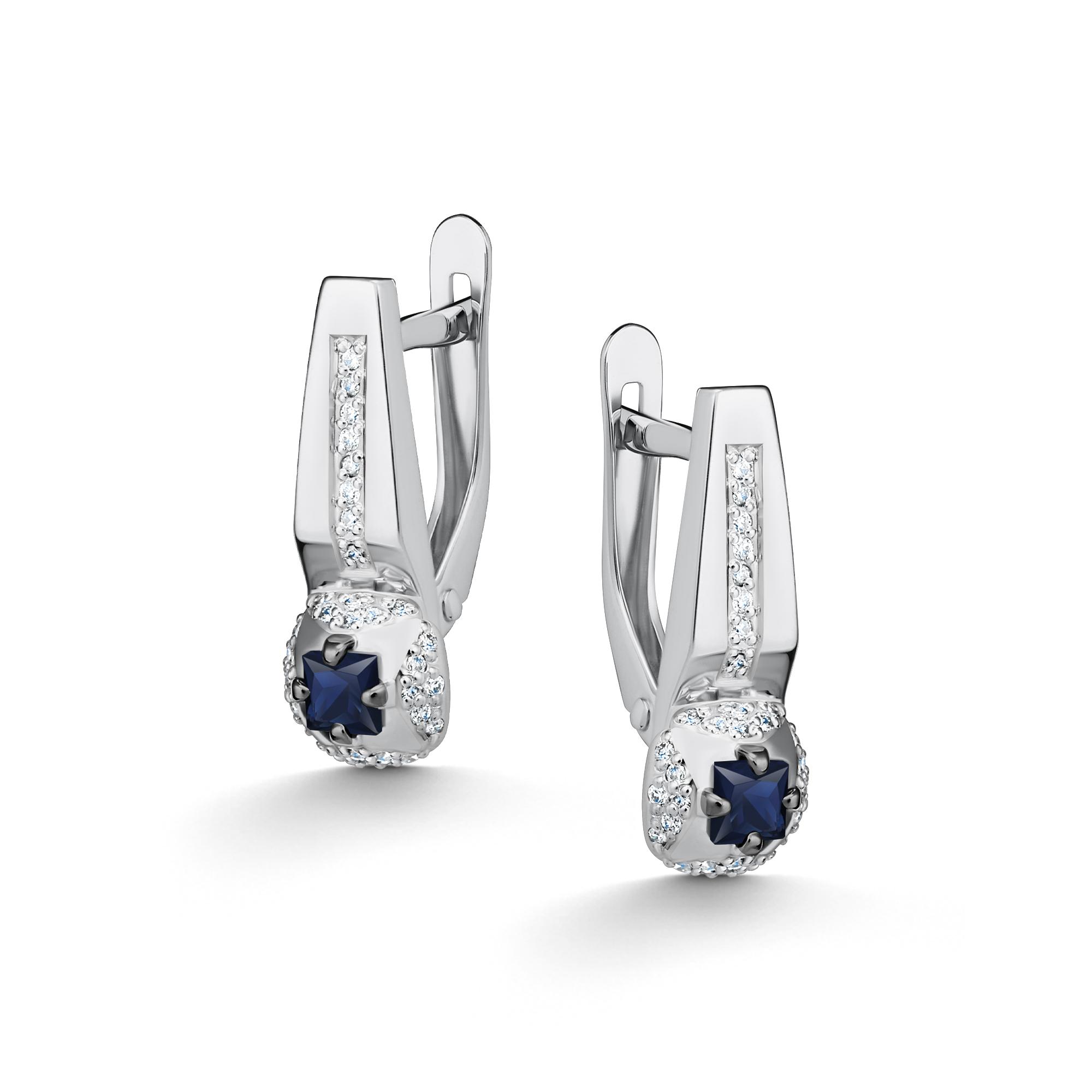 Золотые серьги АЛЬКОР 26691-202 с бриллиантом и сапфиром