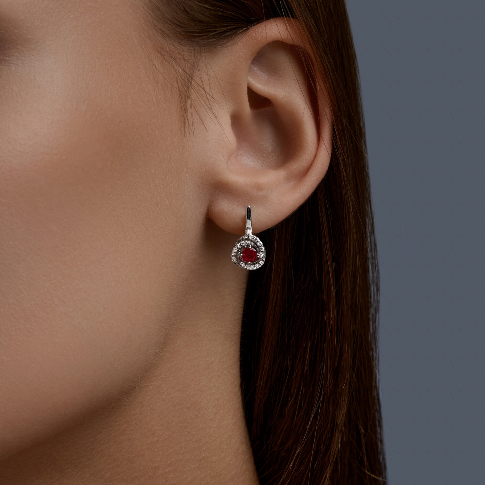 Серебряные серьги SOKOLOV 64020003 с фианитом и рубином