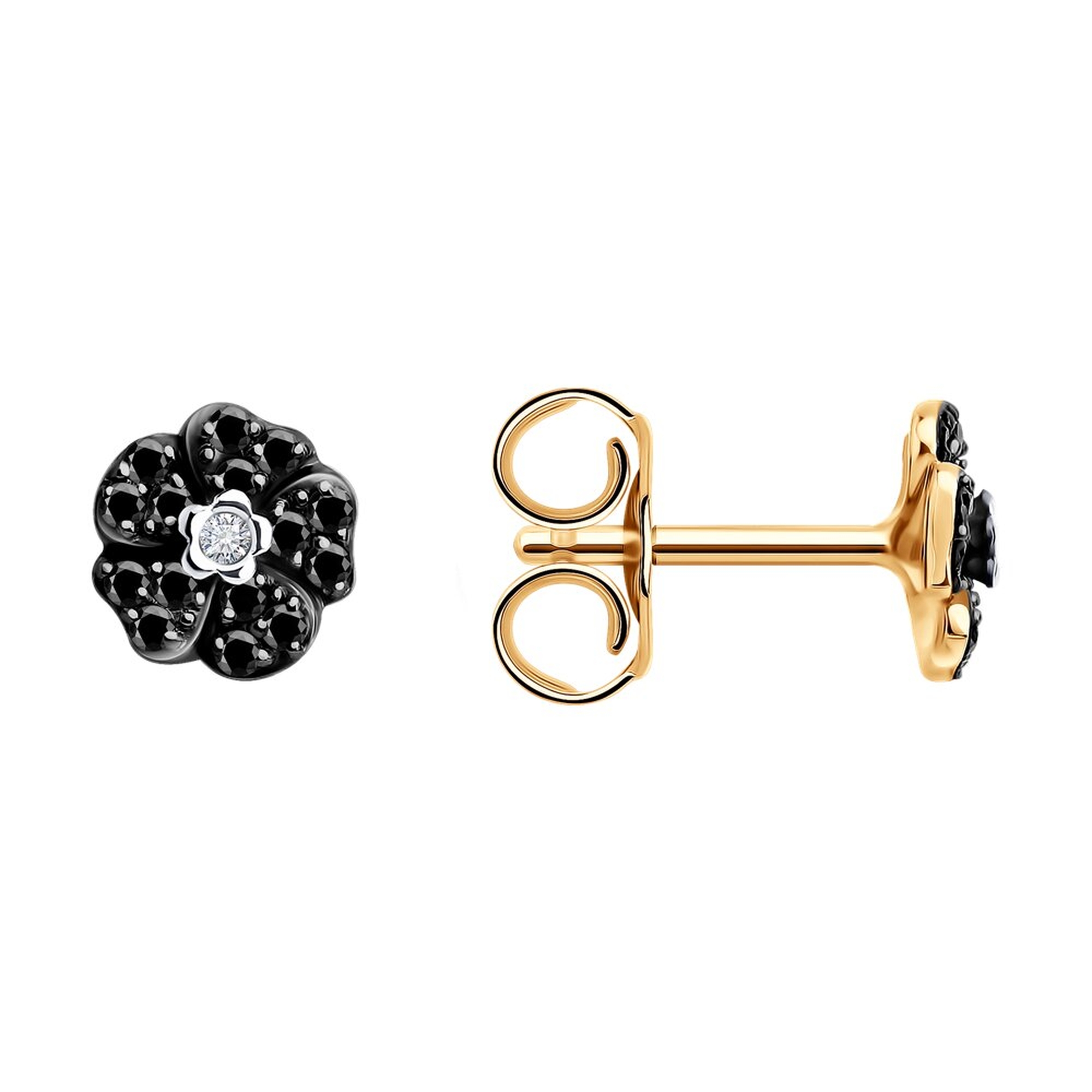 Золотые серьги SOKOLOV 7020171 с бриллиантом и чёрным бриллиантом