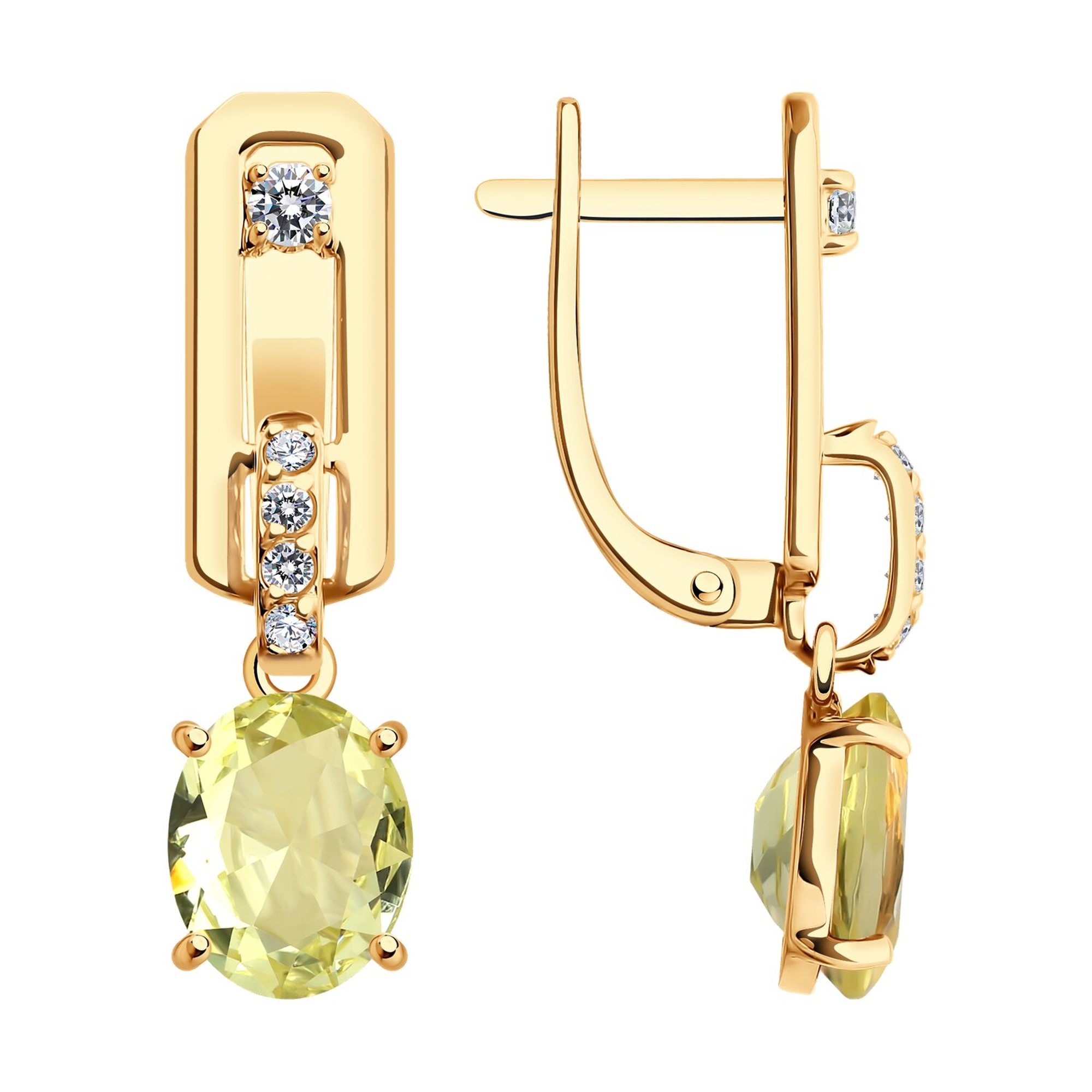 Золотые серьги SOKOLOV 728684 с фианитом и кварцем