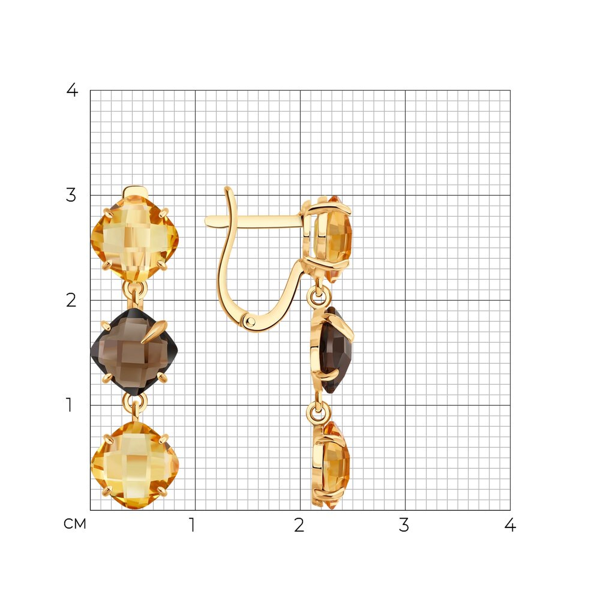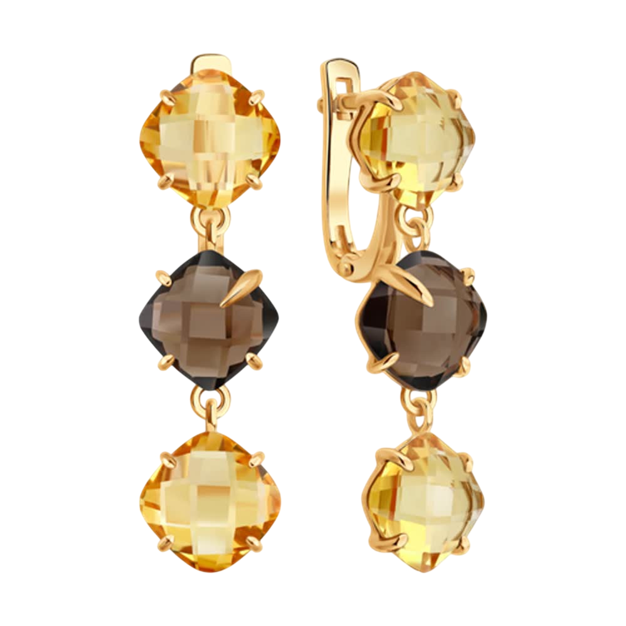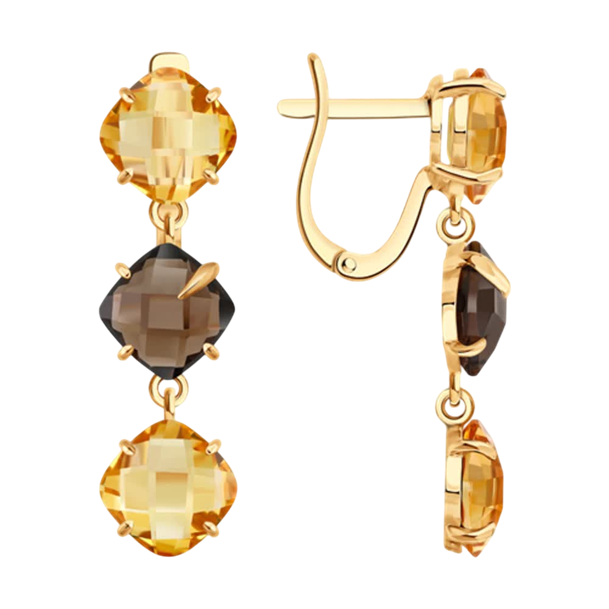 Золотые серьги SOKOLOV 729288 с цитрином и раухтопазом