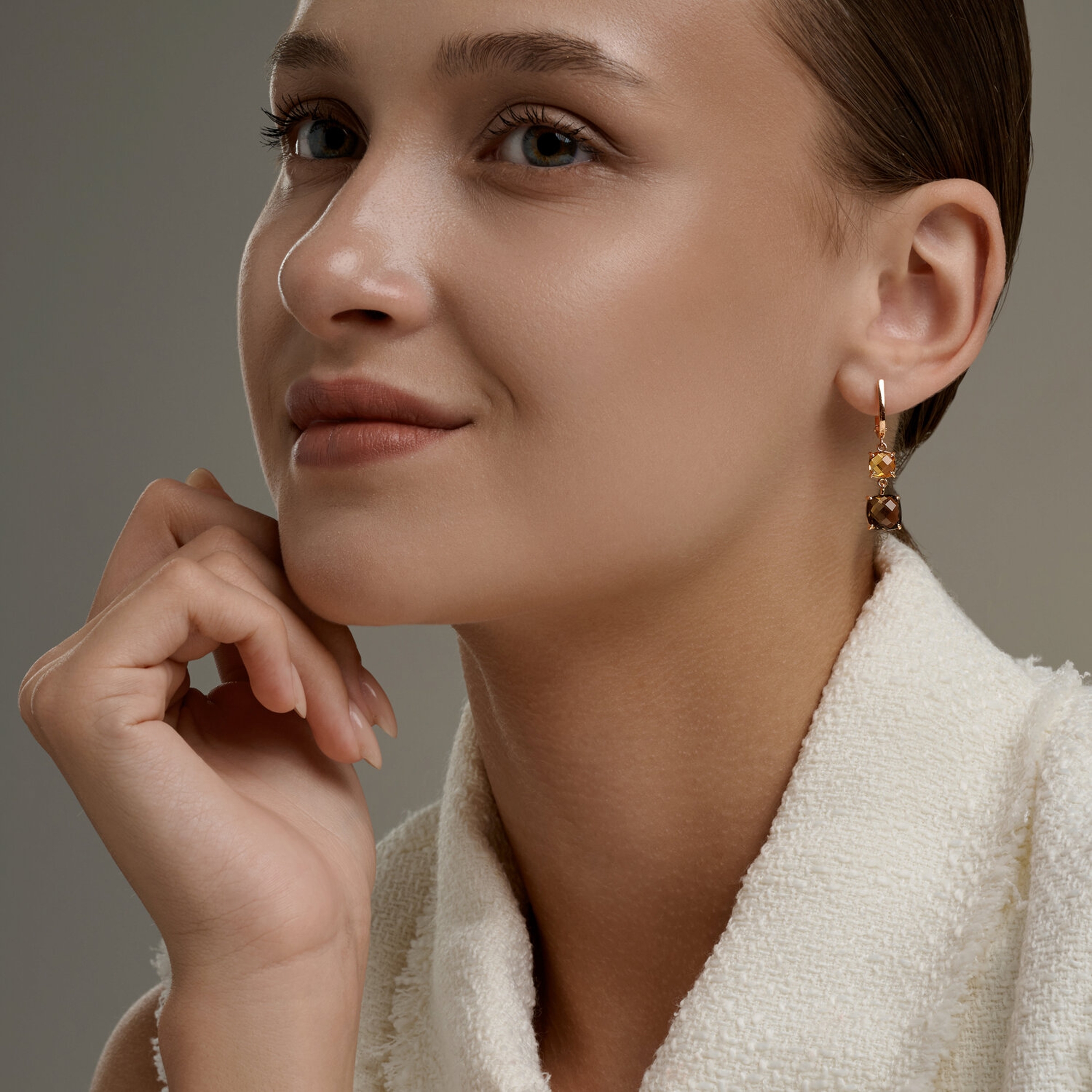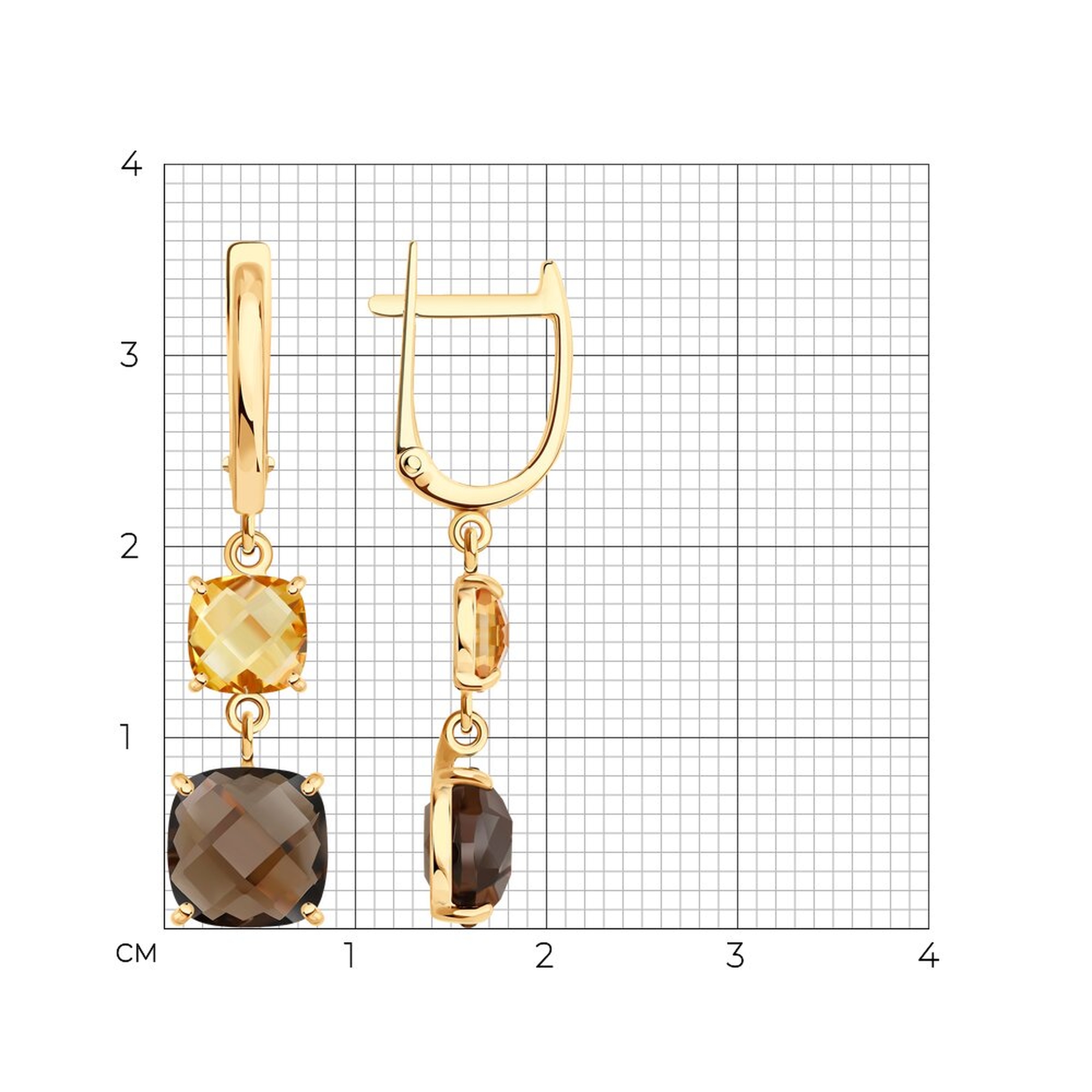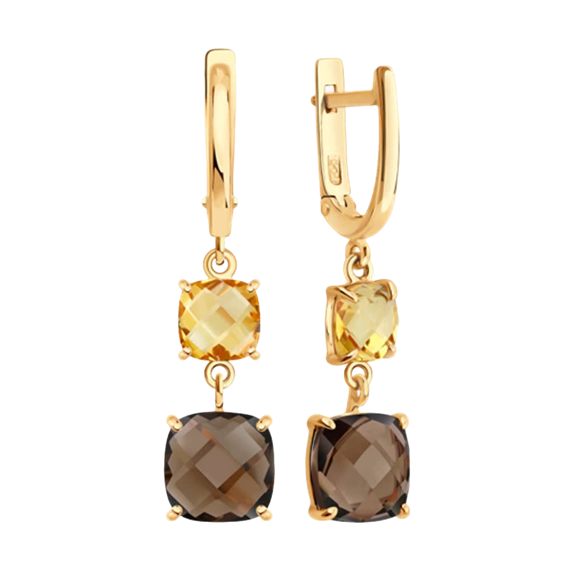 Золотые серьги SOKOLOV 729298 с цитрином и раухтопазом