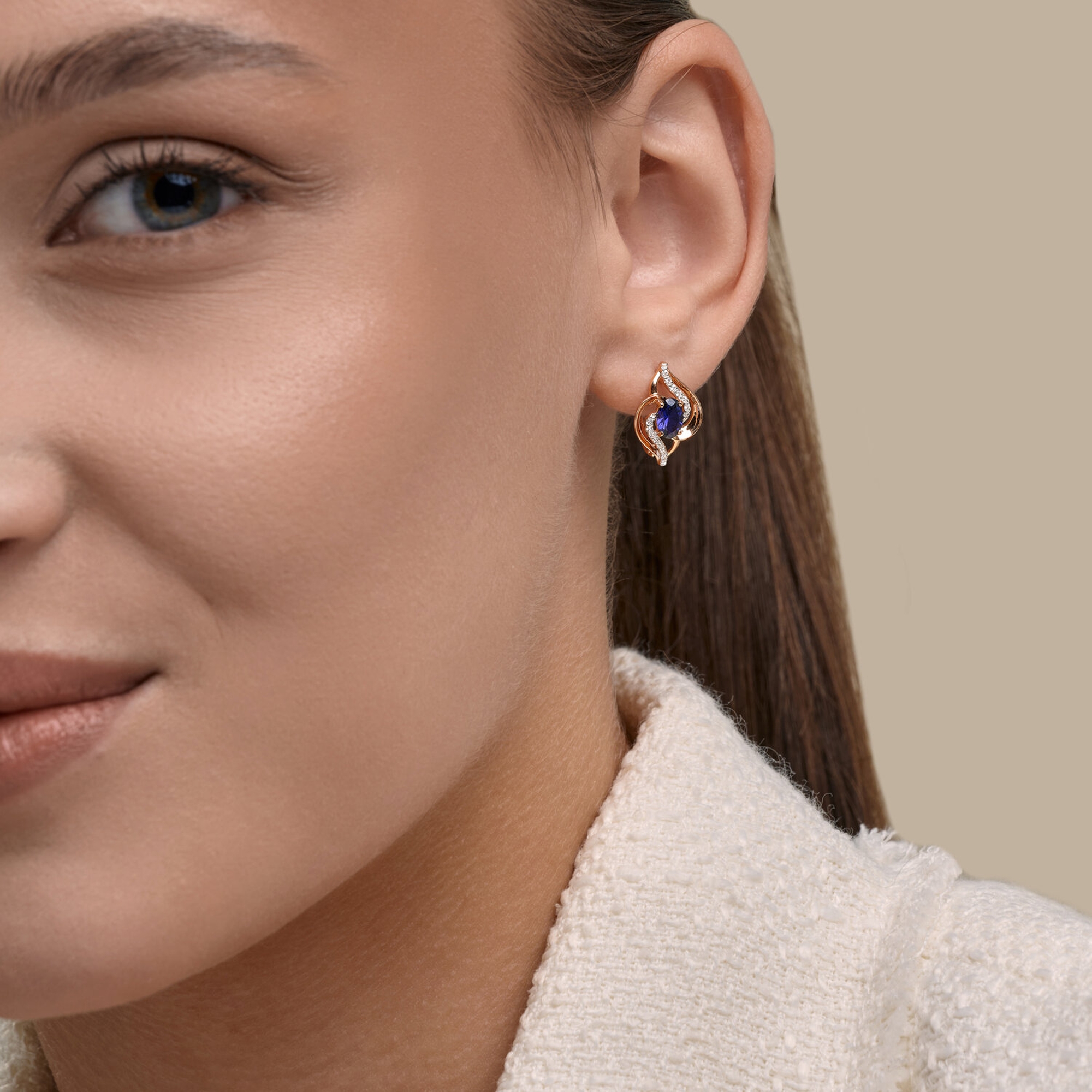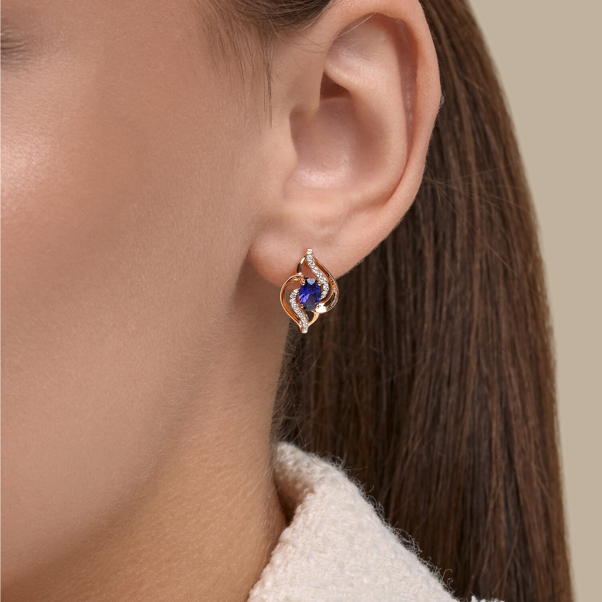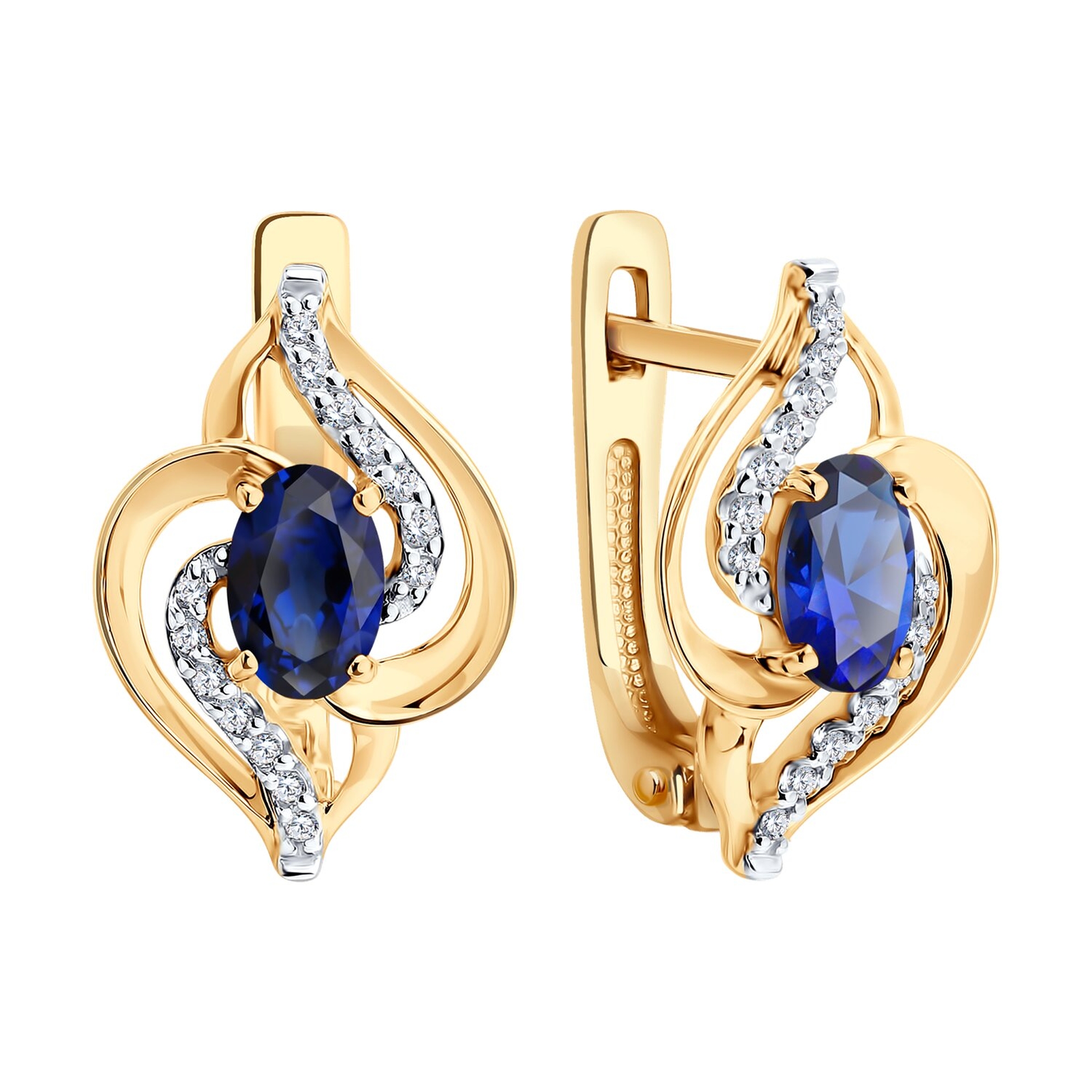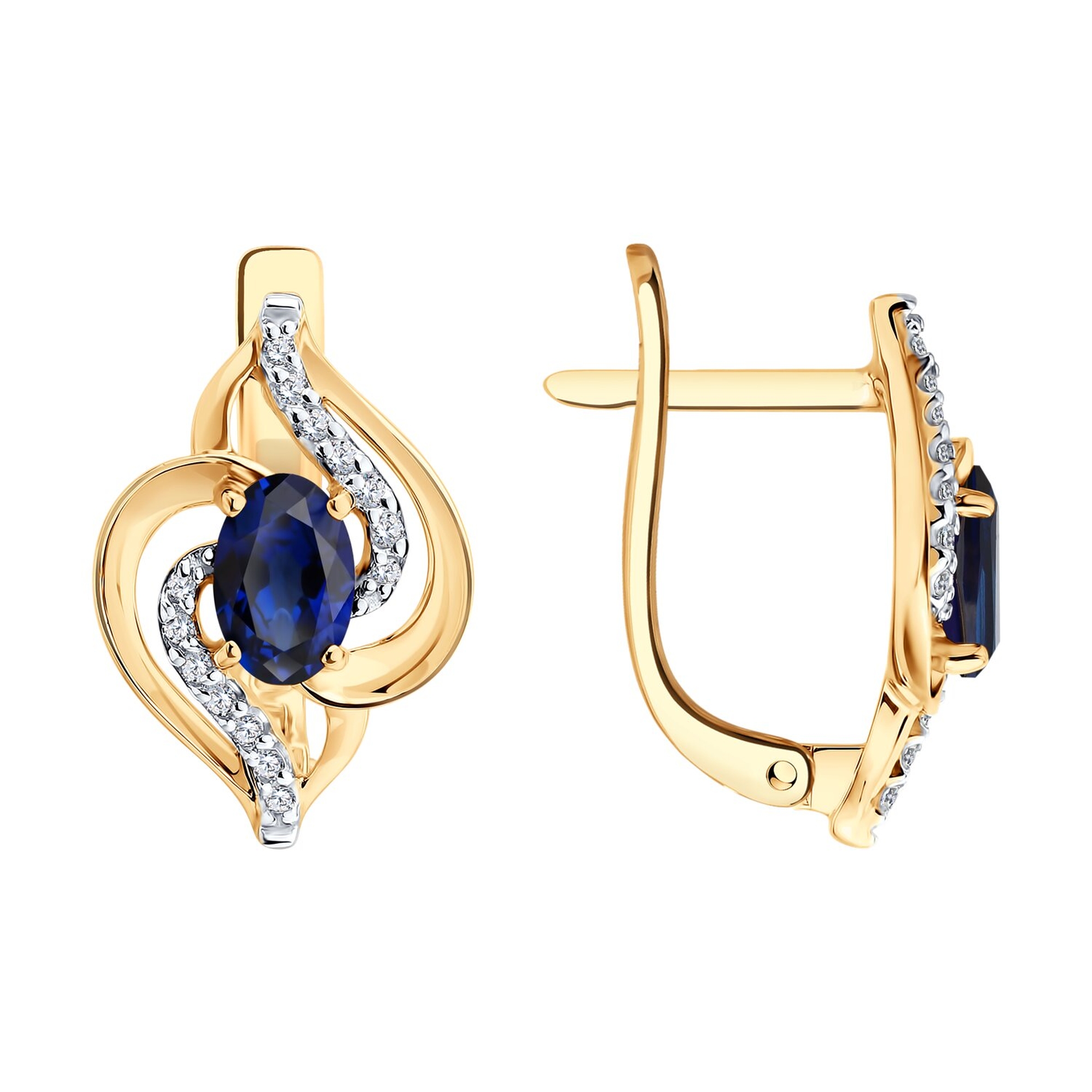 Золотые серьги SOKOLOV 729344 с фианитом и сапфировым корундом
