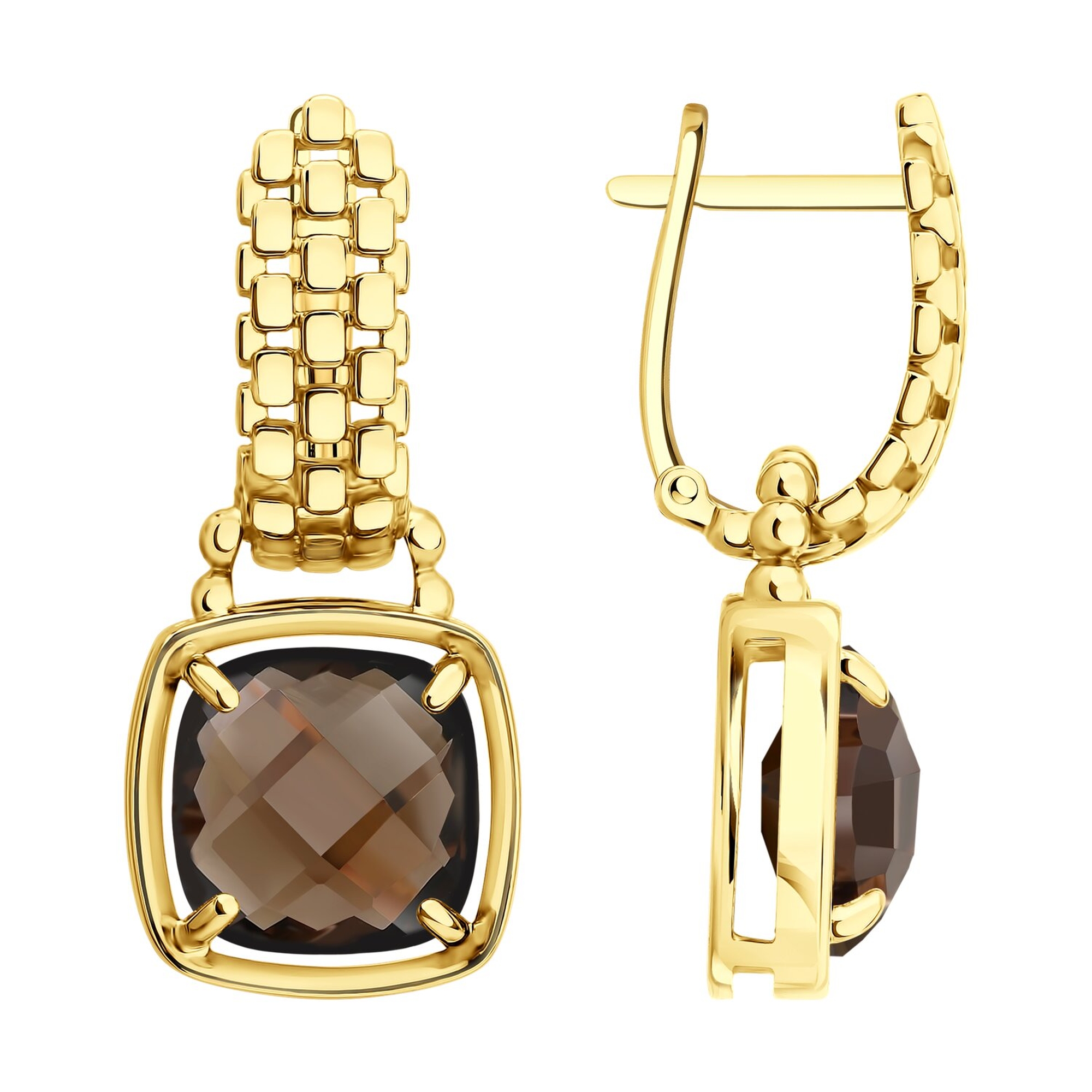 Серьги-трансформеры из лимонного золота SOKOLOV с раухтопазом 729439-2