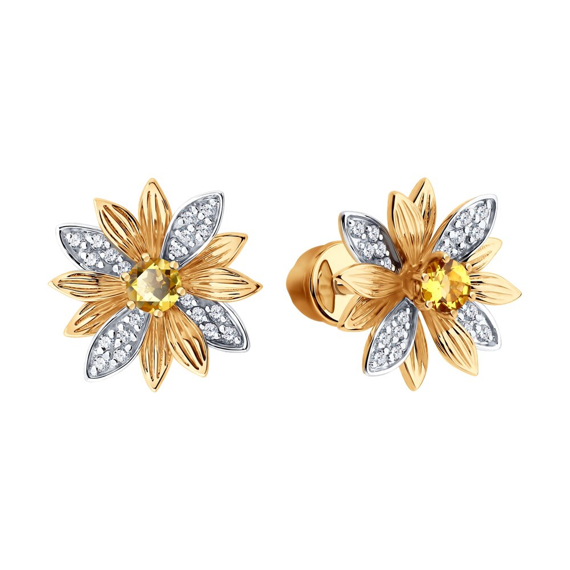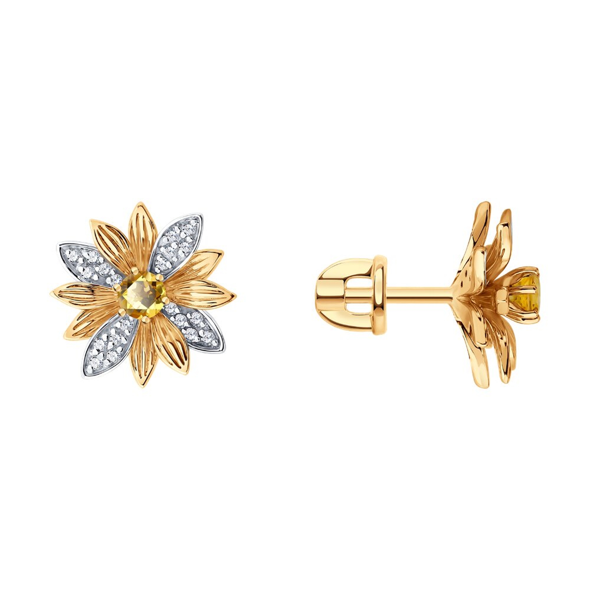 Золотые серьги SOKOLOV 72-00482 с бриллиантом и цитрином