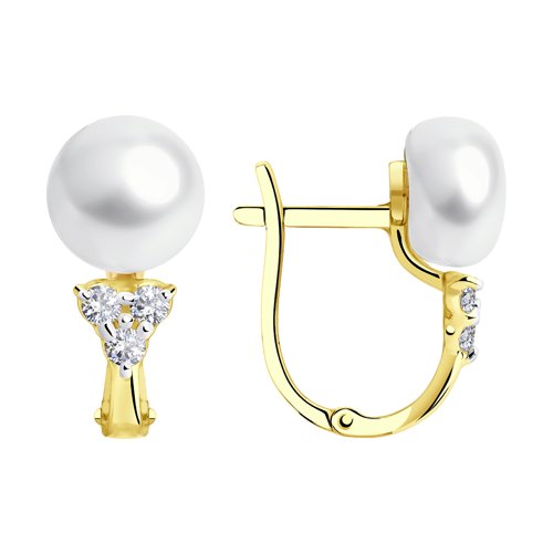 Серьги из лимонного золота SOKOLOV 792238-2 с фианитом и жемчугом