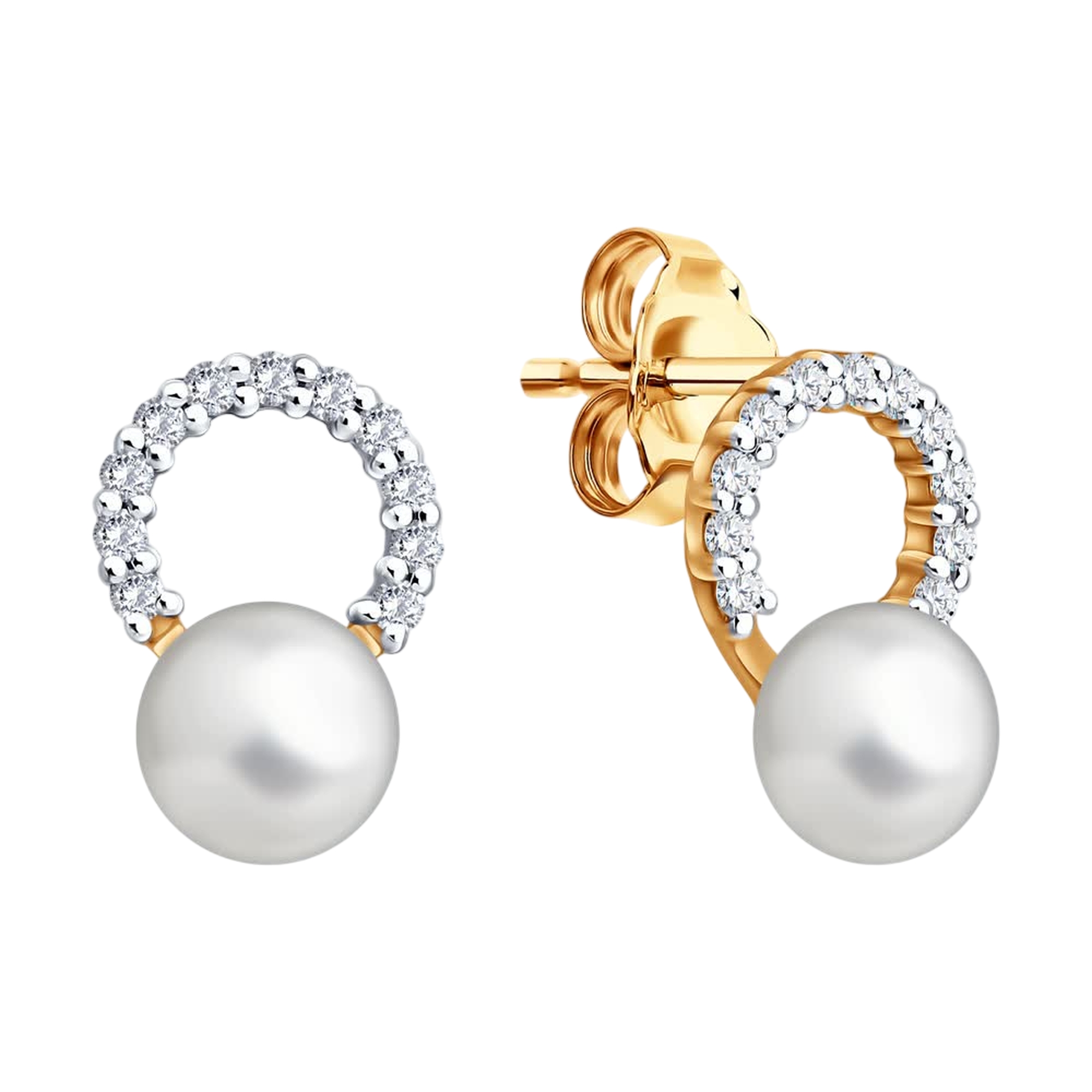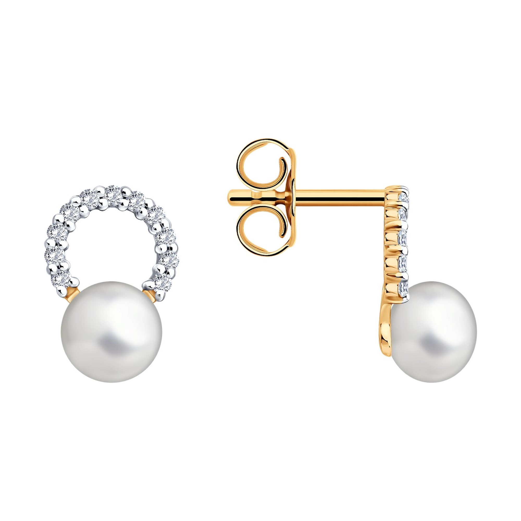 Золотые серьги SOKOLOV 792509 с фианитом и жемчугом