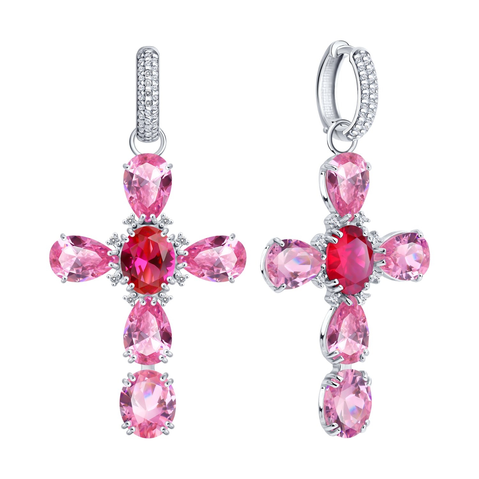 Серебряные серьги-трансформеры Кресты SOKOLOV с рубиновым корундом и фианитом 84020044