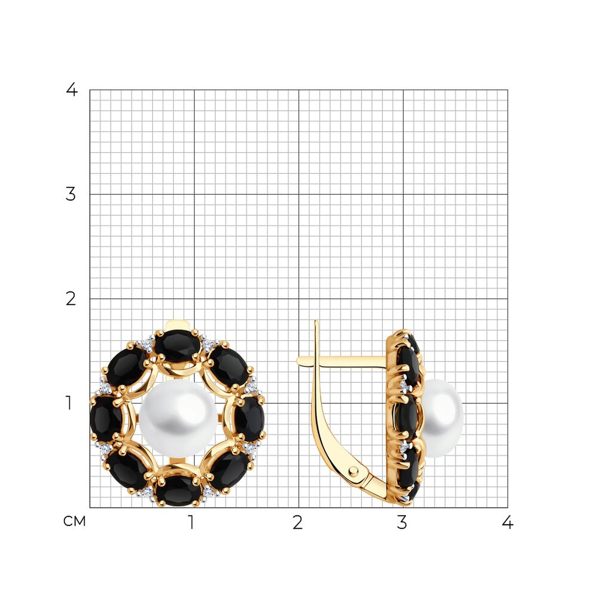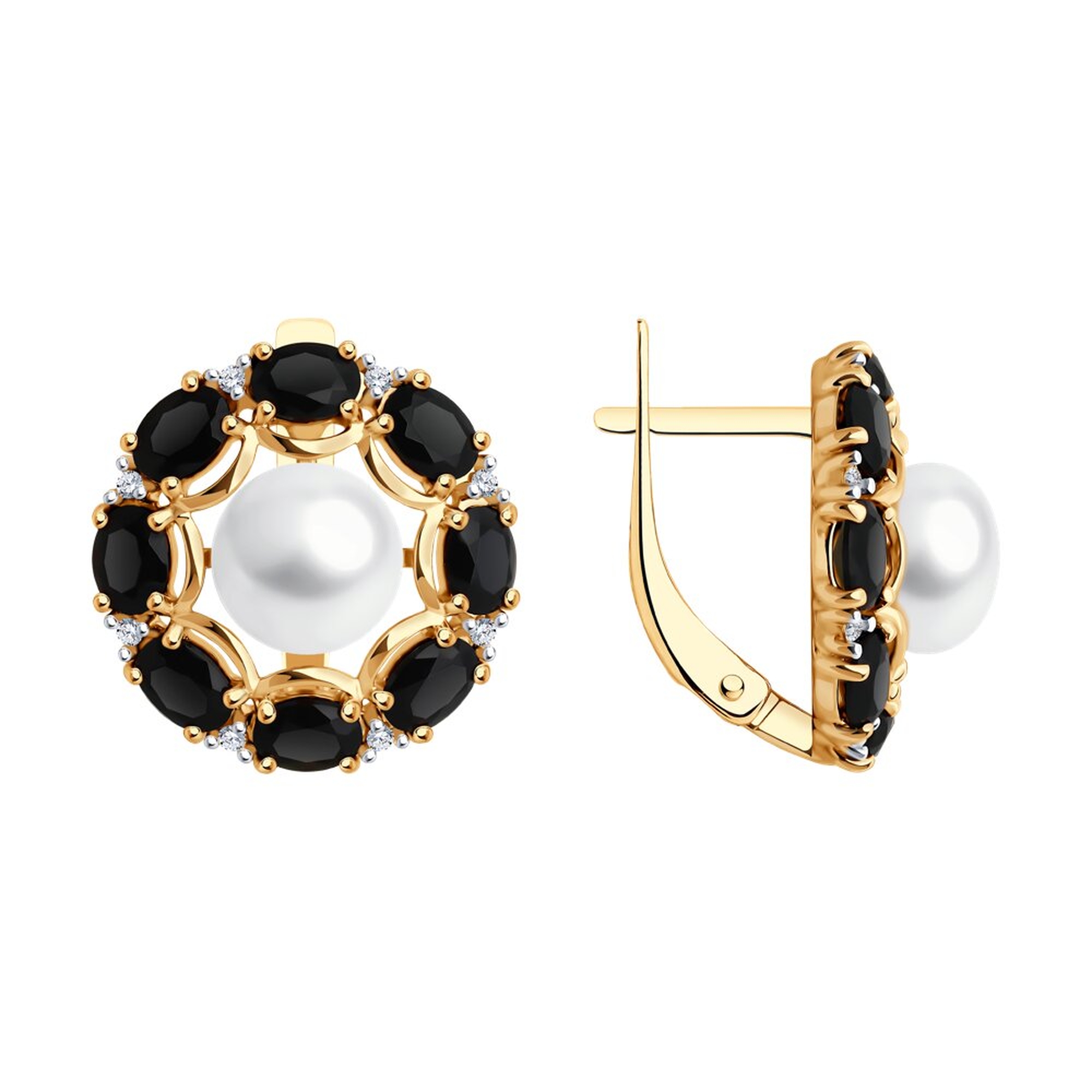 Серьги из золочёного серебра SOKOLOV 92022823 с фианитом, агатом и жемчугом