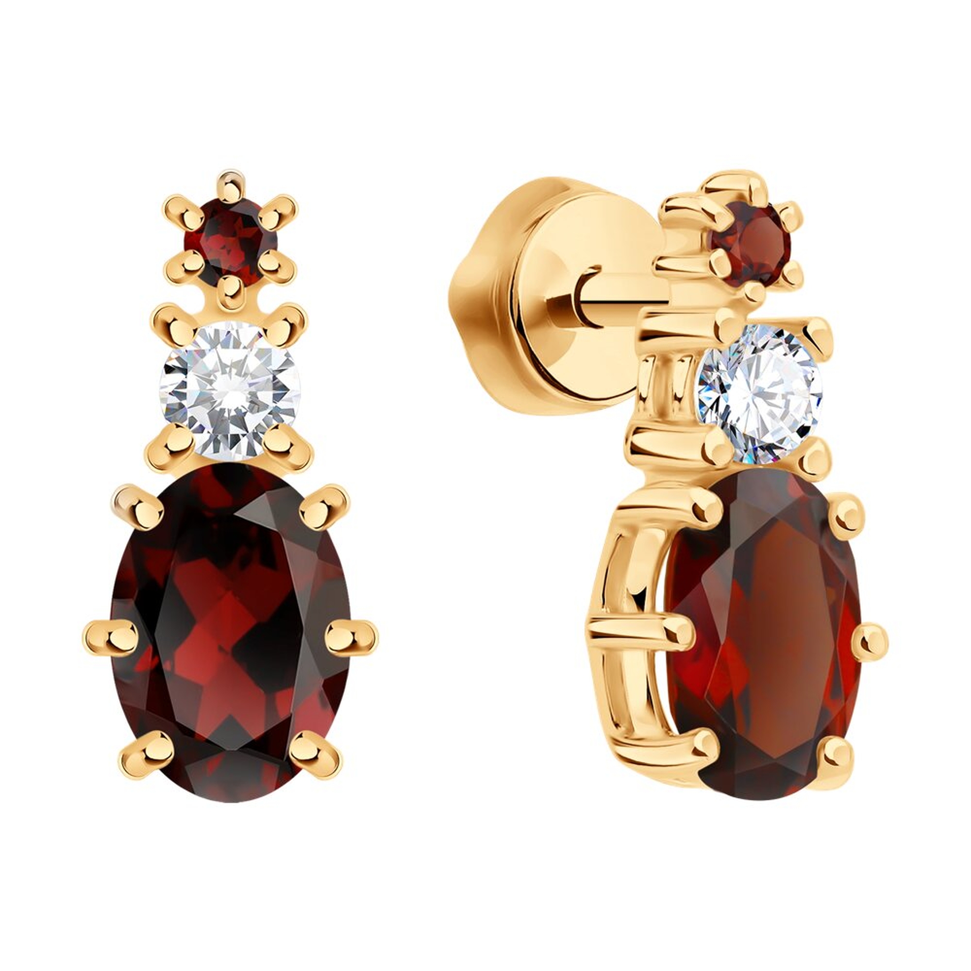 Серьги из золочёного серебра SOKOLOV 92025327 с фианитом и гранатом