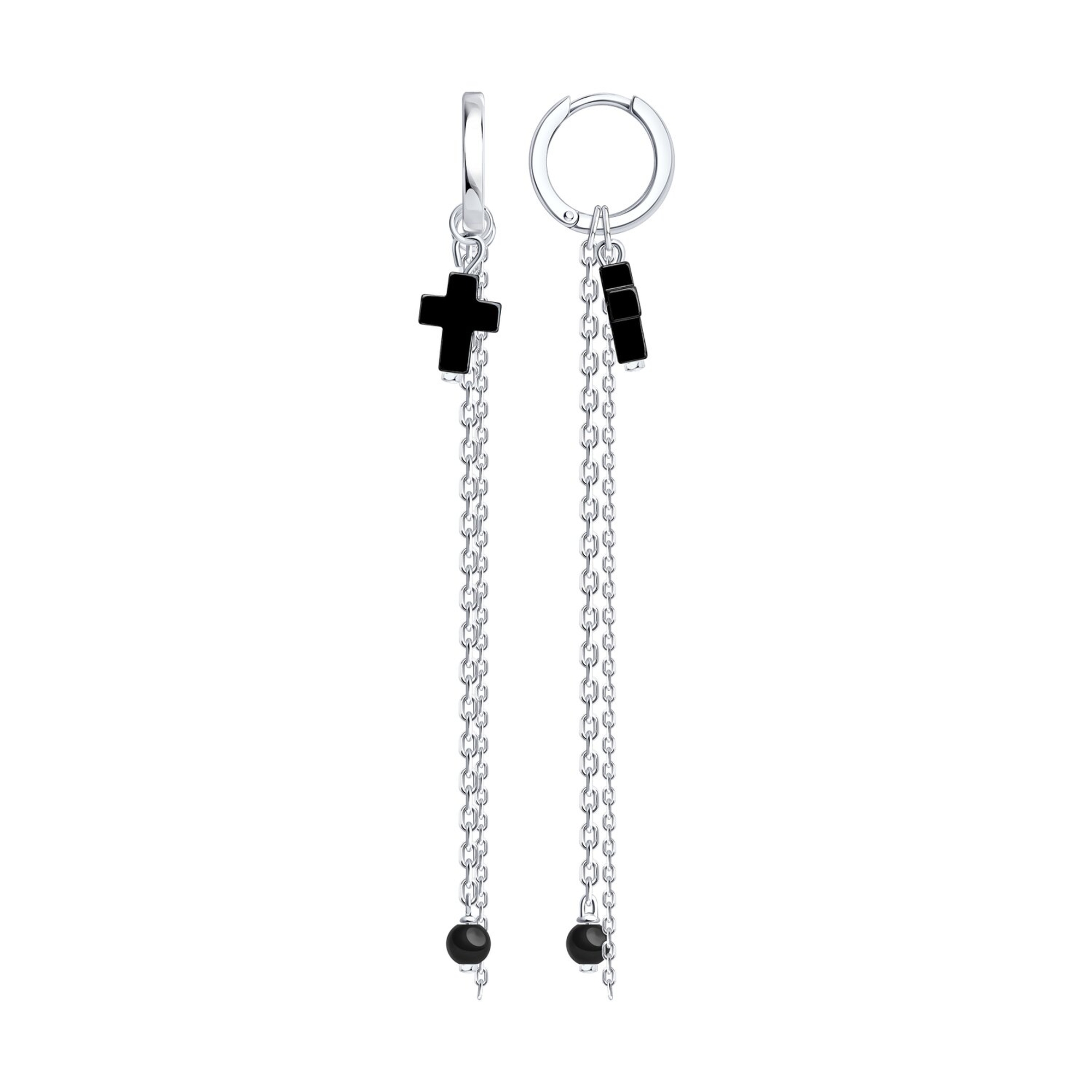 Серебряные серьги-трансформеры Кресты Diamant с гематитом 94-321-00033-1