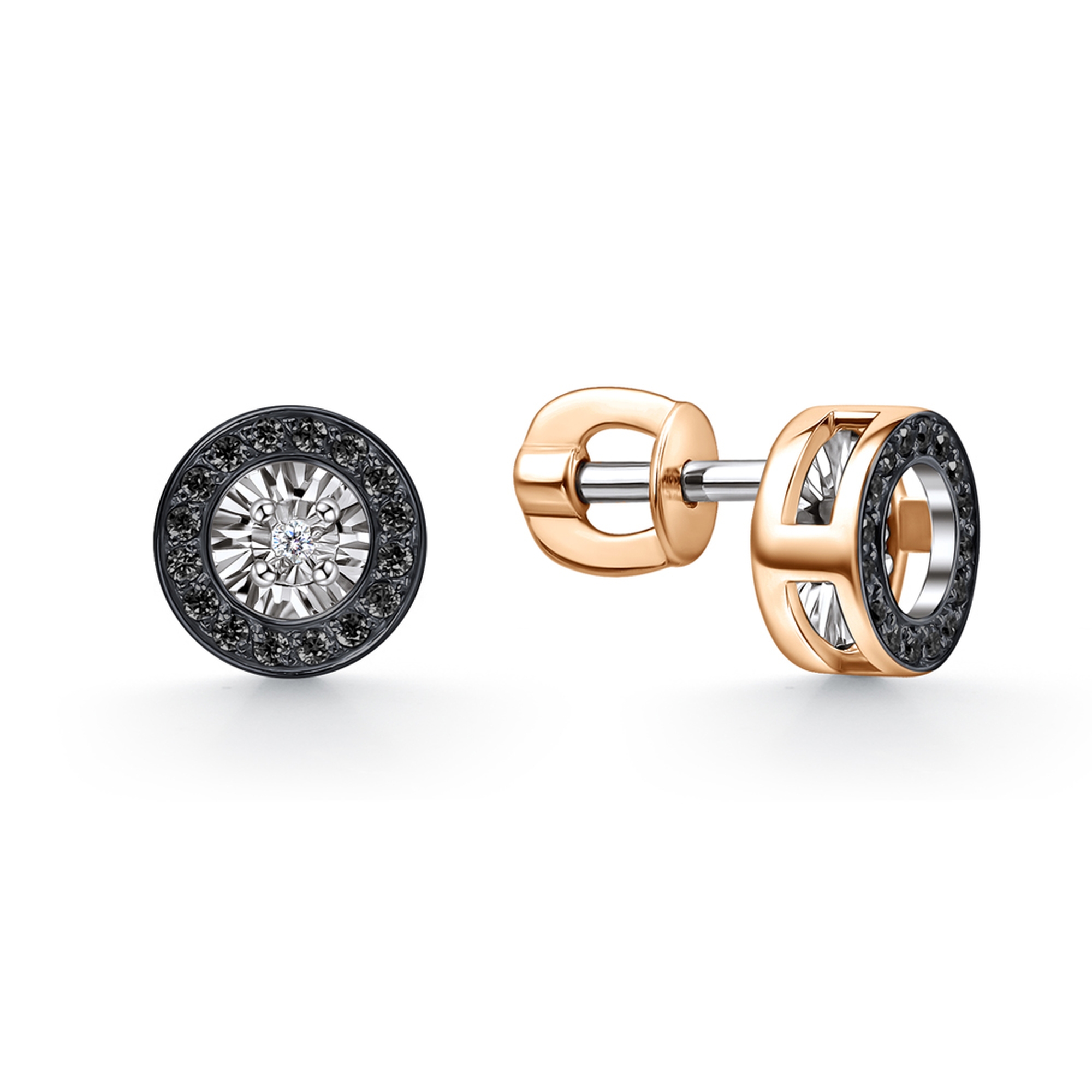 Золотые серьги GRIGORIEV Г12-11-5705-33-00 с бриллиантом и чёрным бриллиантом