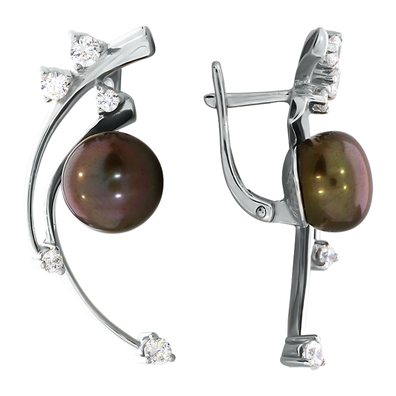 Серебряные серьги Жемчужное подворье 21410357.0.b.000 с фианитом и жемчугом