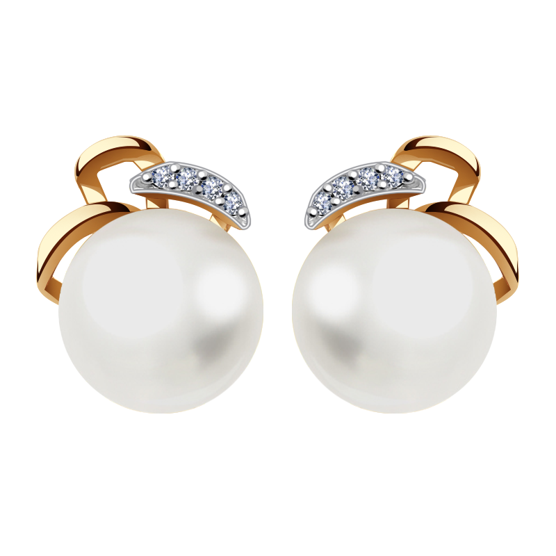 Золотые серьги Жемчужное подворье 25510237.1.b.000 с фианитом и жемчугом