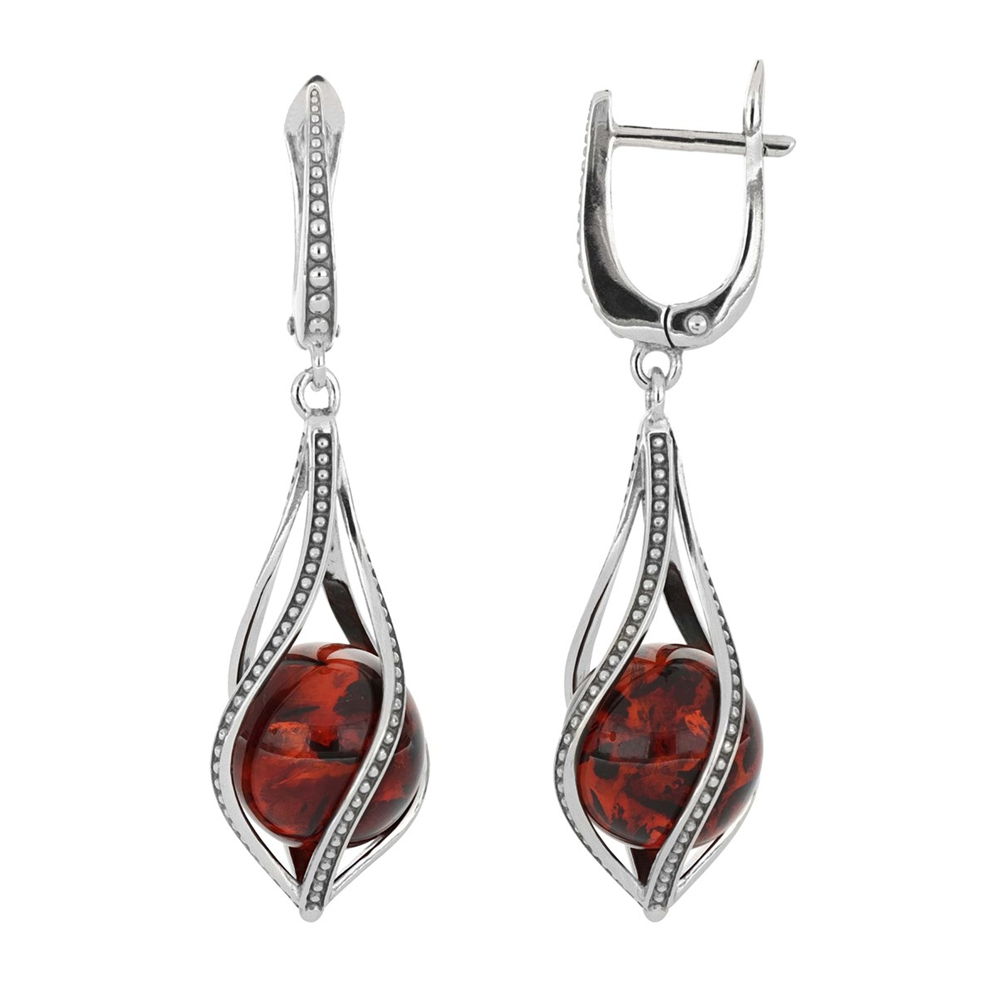 Серебряные серьги Дарвин 429041372qq-к с янтарём