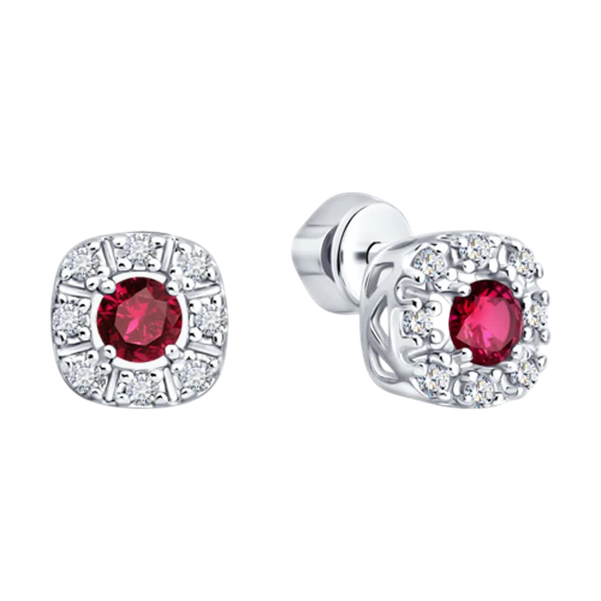 Серебряные серьги SOKOLOV 64020002 с фианитом и рубином