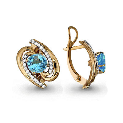 Серьги из золочёного серебра AQUAMARINE А4405705А-п с топазом и фианитом