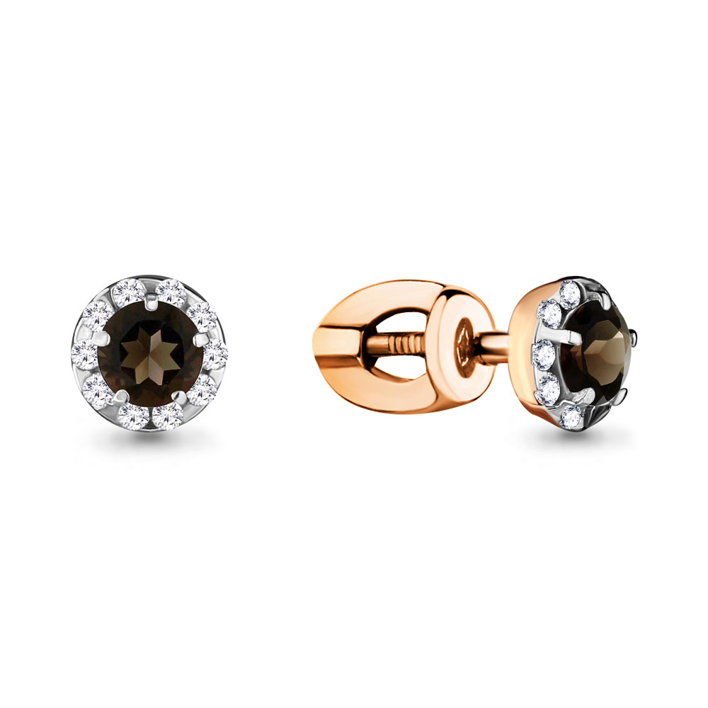 Серьги из золочёного серебра AQUAMARINE А4408501А-п с фианитом и раухтопазом