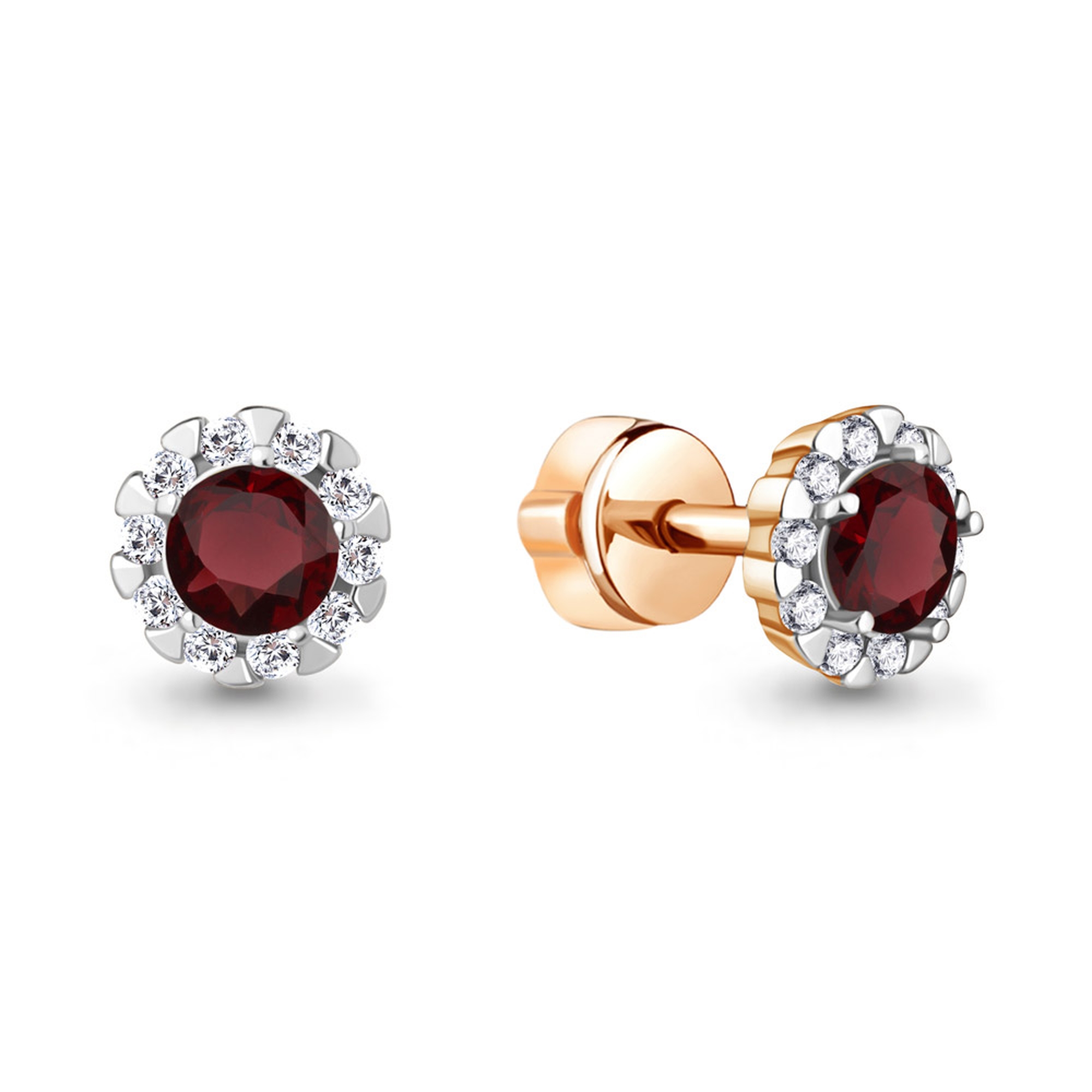 Серьги из золочёного серебра AQUAMARINE А4408503А-п с фианитом и гранатом