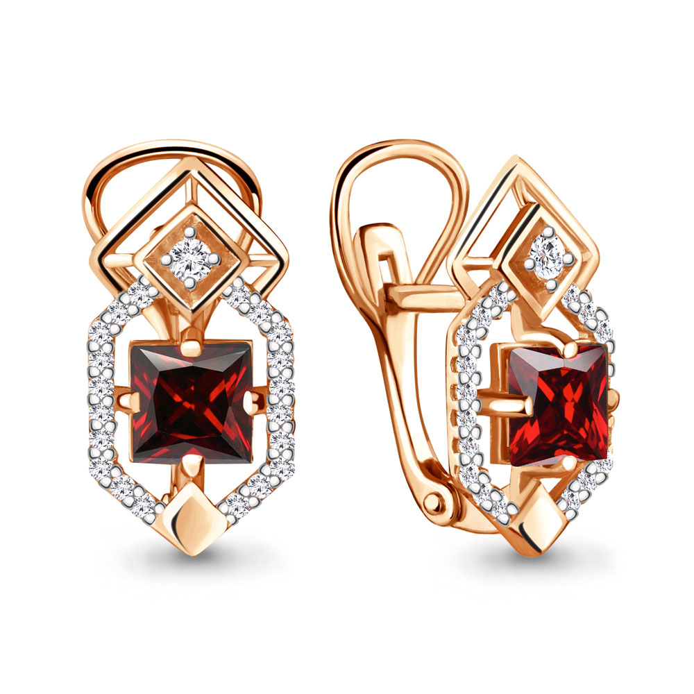Серьги из золочёного серебра AQUAMARINE А4456203А-п с фианитом и гранатом