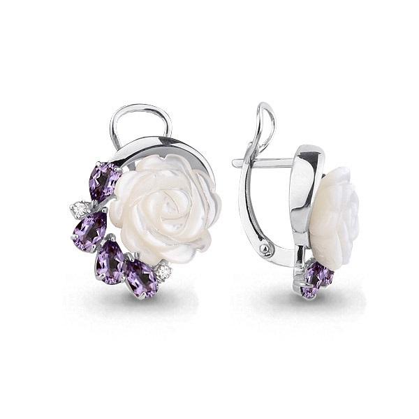 Серебряные серьги AQUAMARINE А4470604А с фианитом, аметистом и перламутром