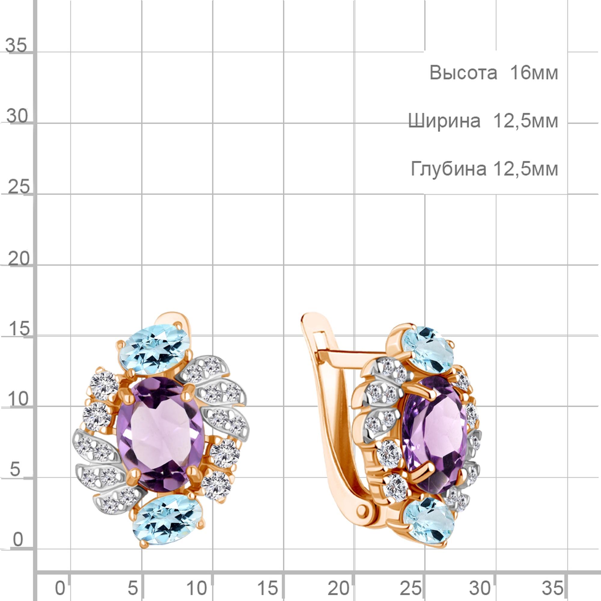 Серьги из золочёного серебра AQUAMARINE А45027177А-п с топазом, фианитом и аметистом