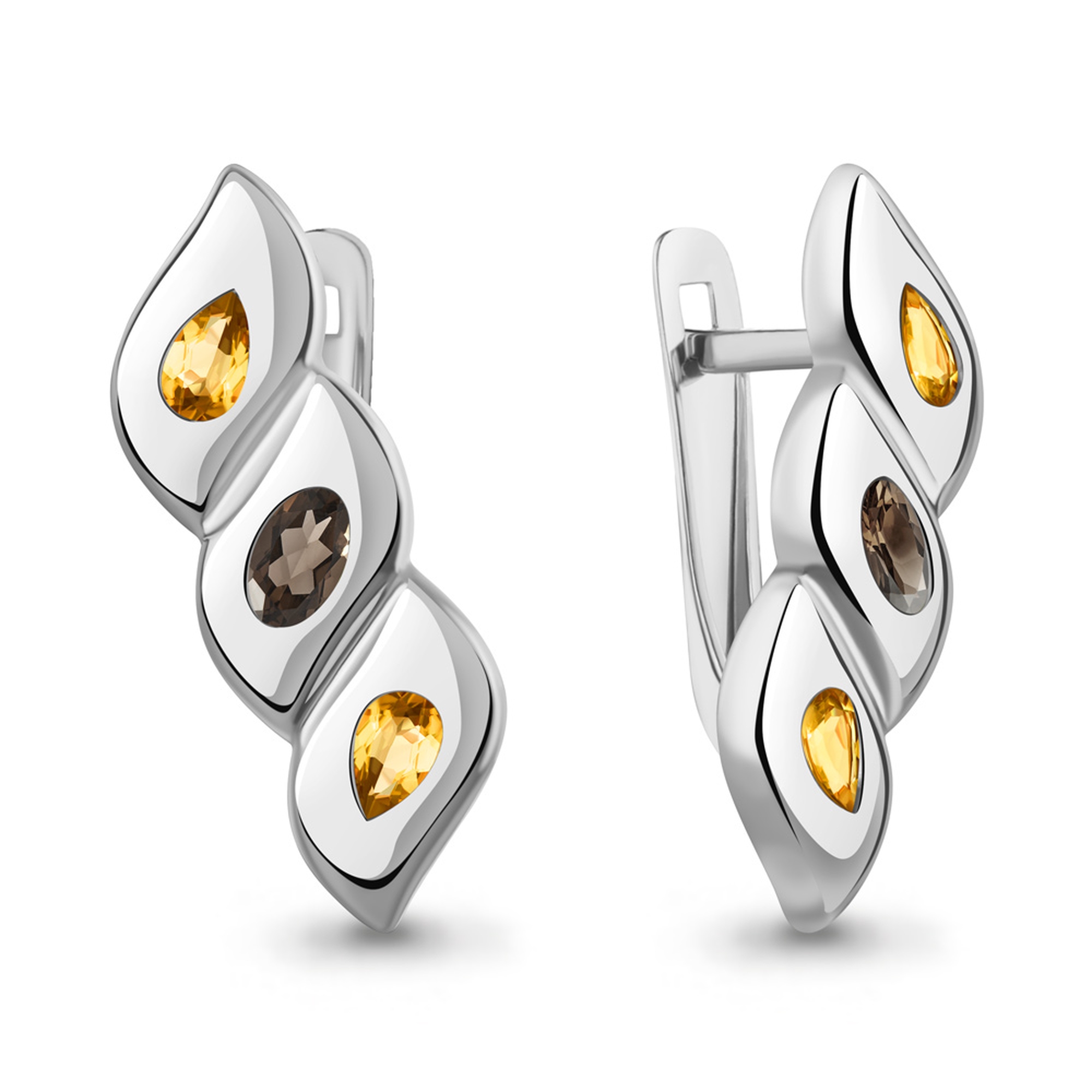 Серебряные серьги AQUAMARINE А45027635 с цитрином и кварцем