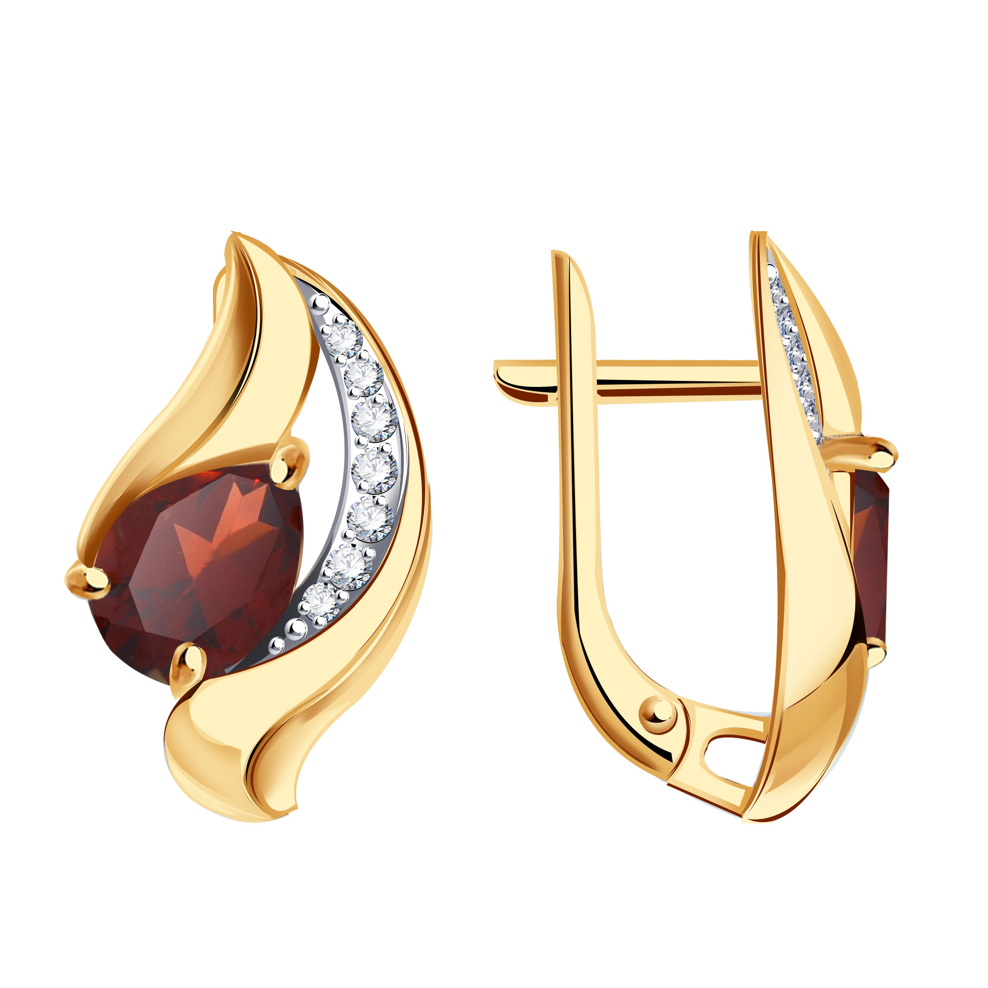 Золотые серьги Александра кл4569а-2ск с фианитом и гранатом