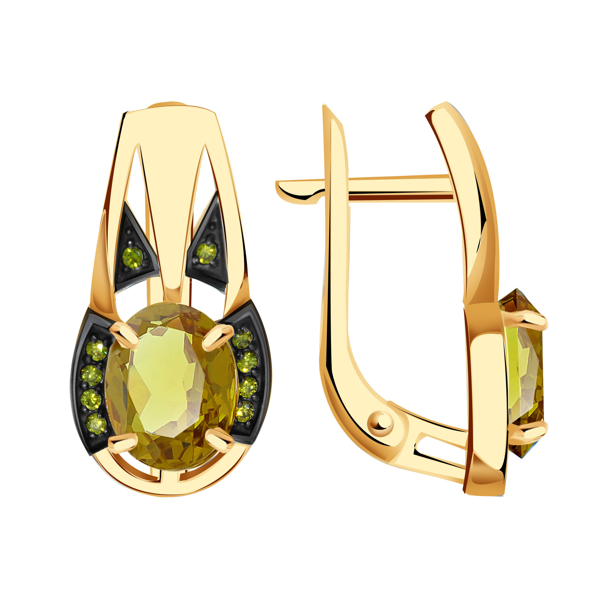 Золотые серьги Александра с ситаллом цвета Султанит и фианитом кл4611а-48ск-са